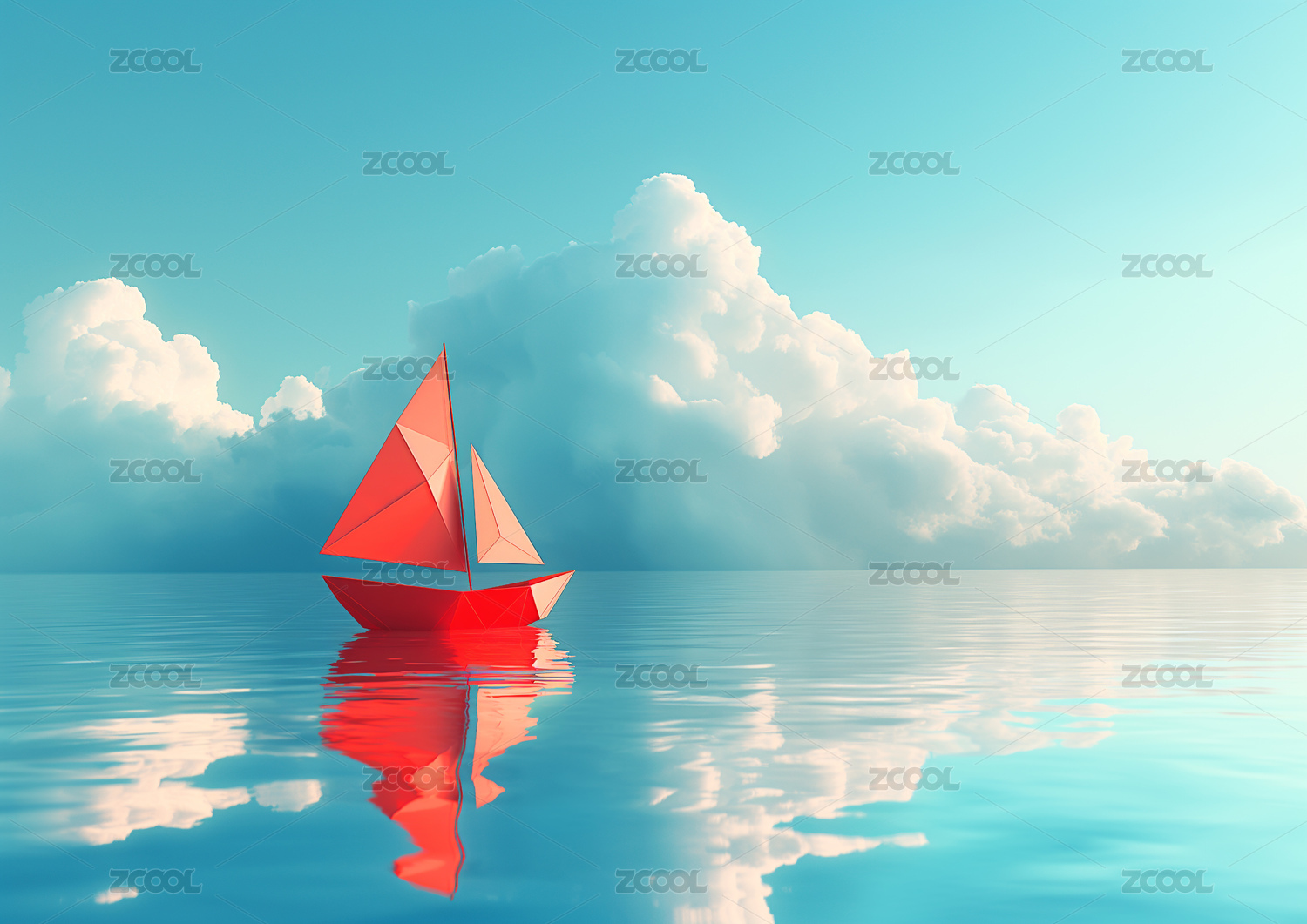 红色小帆船平静海面