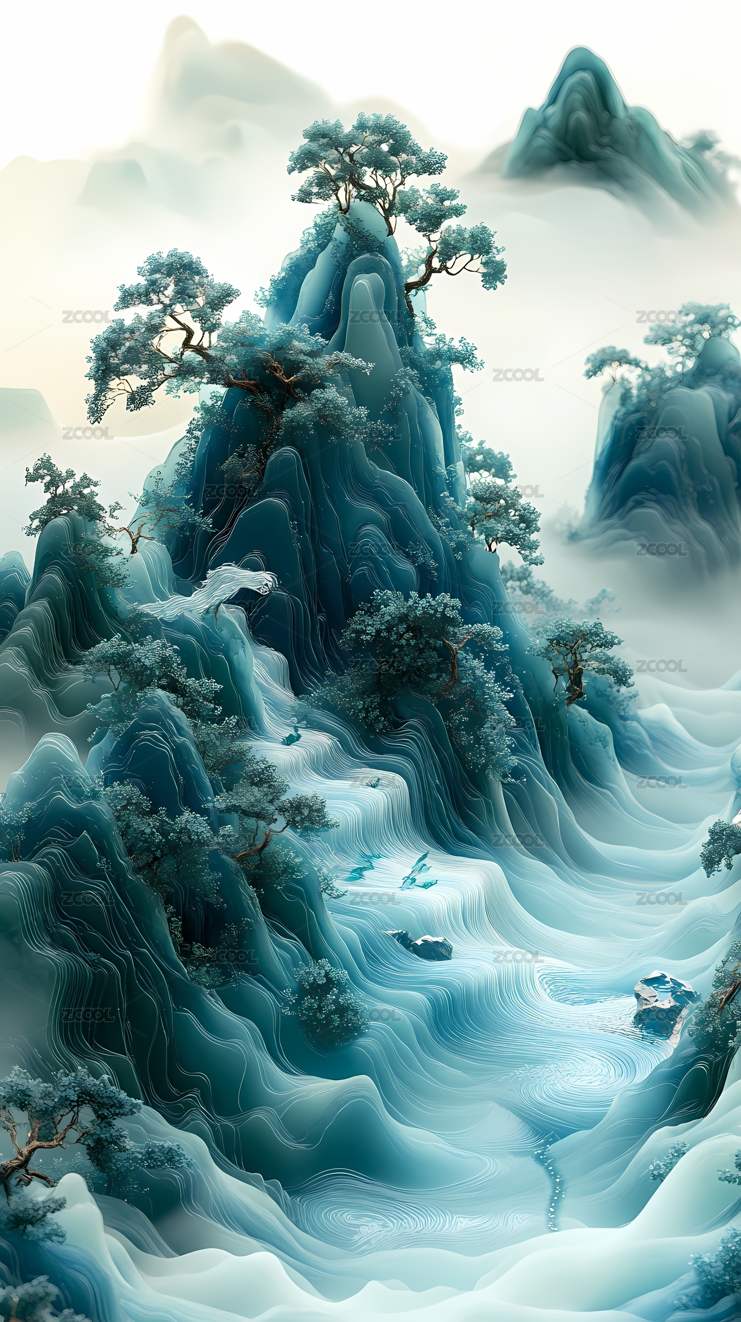 3D中式国潮山脉风景