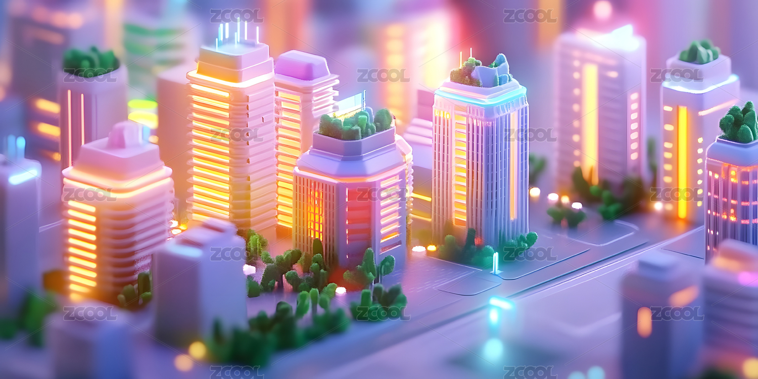 赛博朋克城市建筑现代科幻商务三维渲染插画