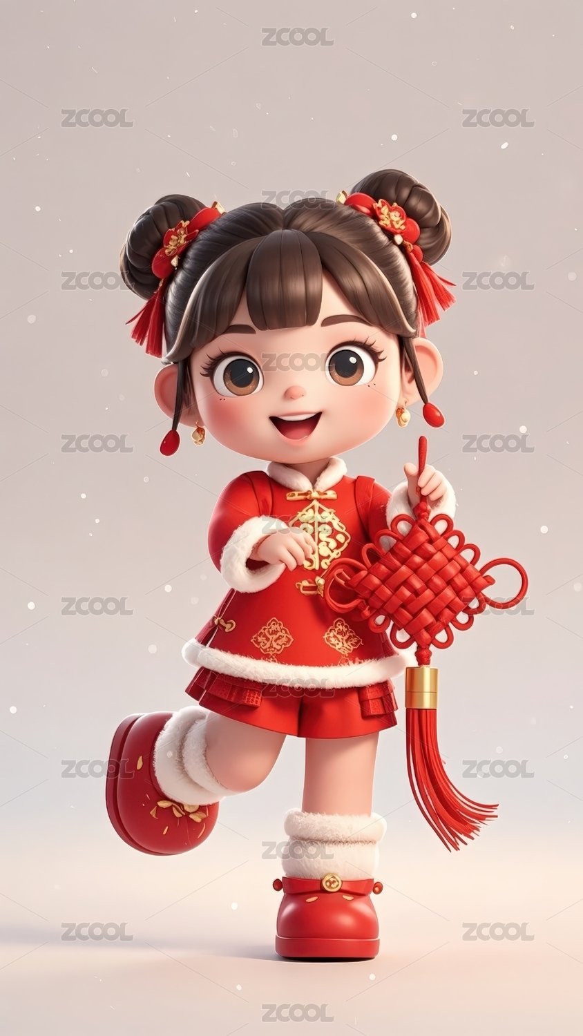 可爱中国女孩新年装扮