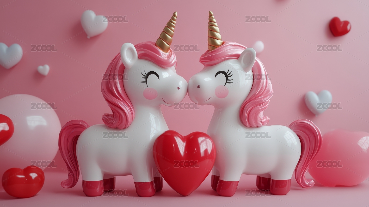 独角兽, 彩虹, 爱心, 粉色, 可爱, 卡通, 3D, 甜美, 梦幻, 蓝色