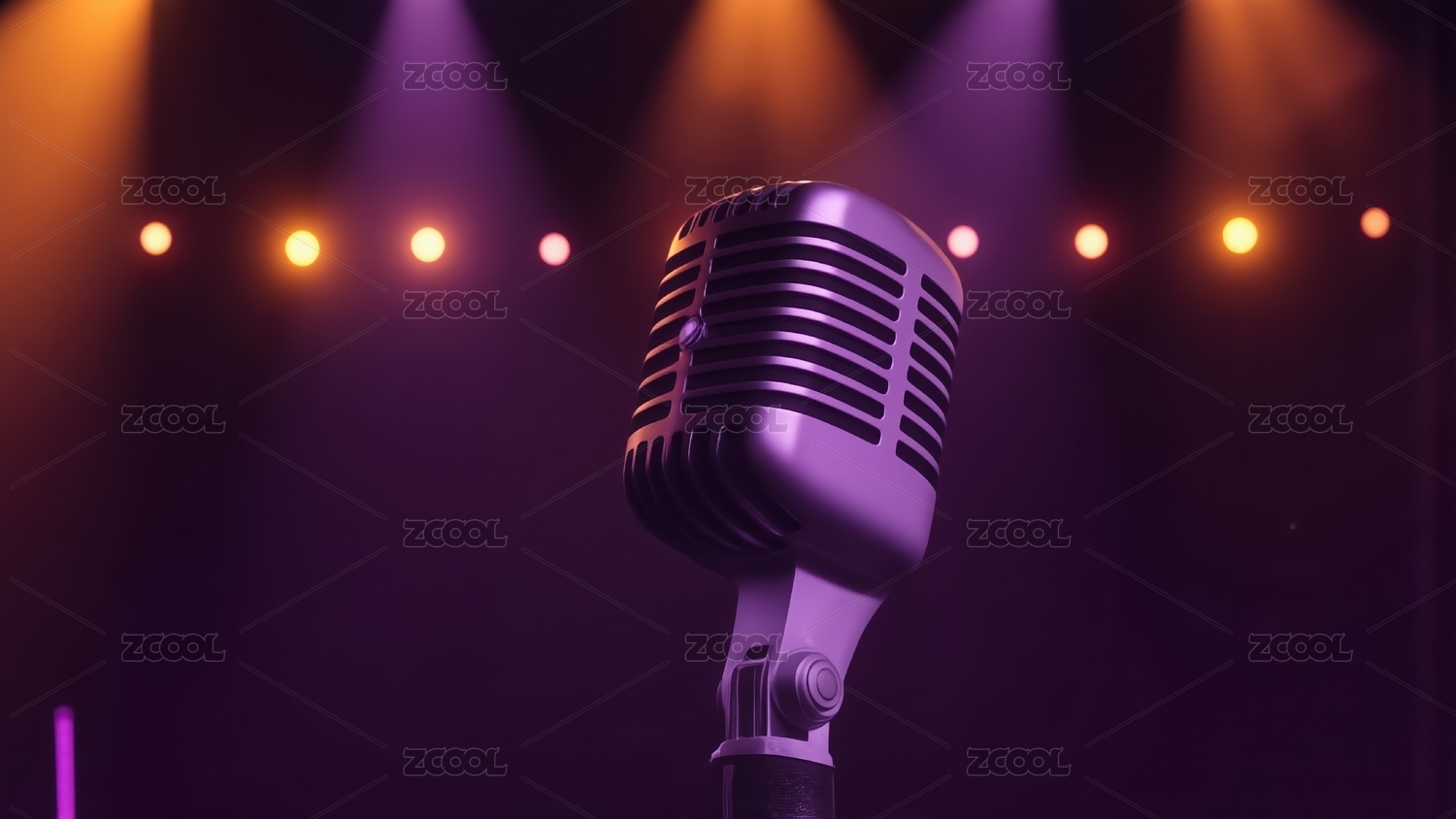 明亮灯光下舞台上的麦克风,专业演讲采访唱