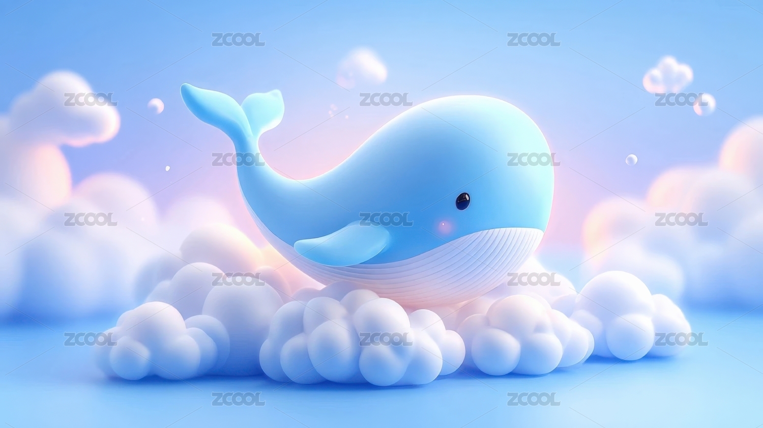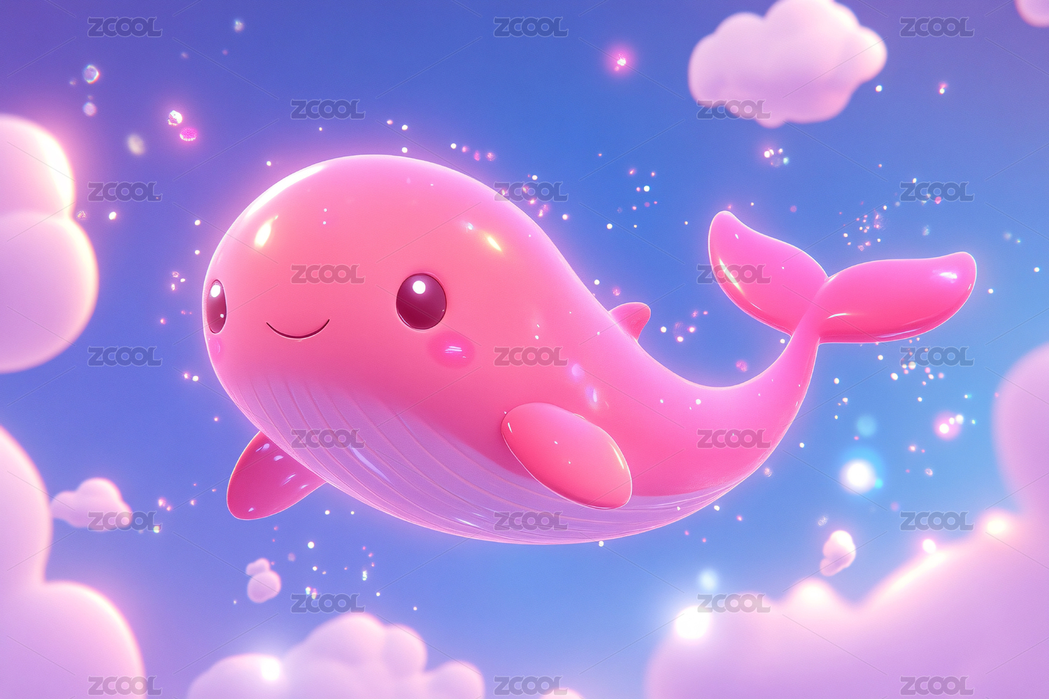 鲸鱼,蓝色,童趣,梦幻,粉色,卡通,可爱,紫色,治愈,水彩