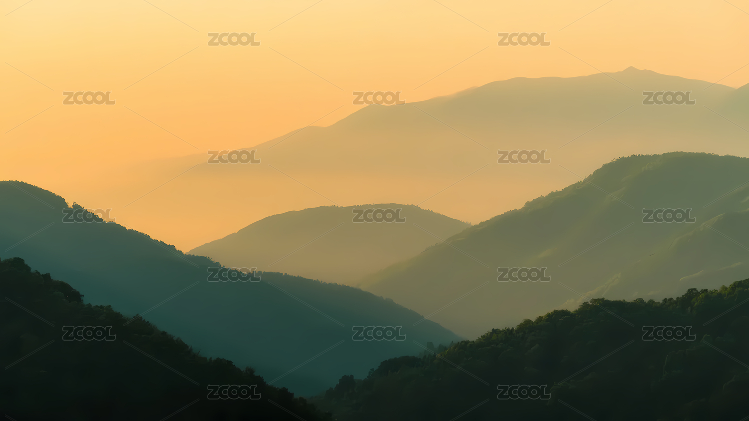 黎明时分群山间云雾缭绕,中国江西婺源江岭