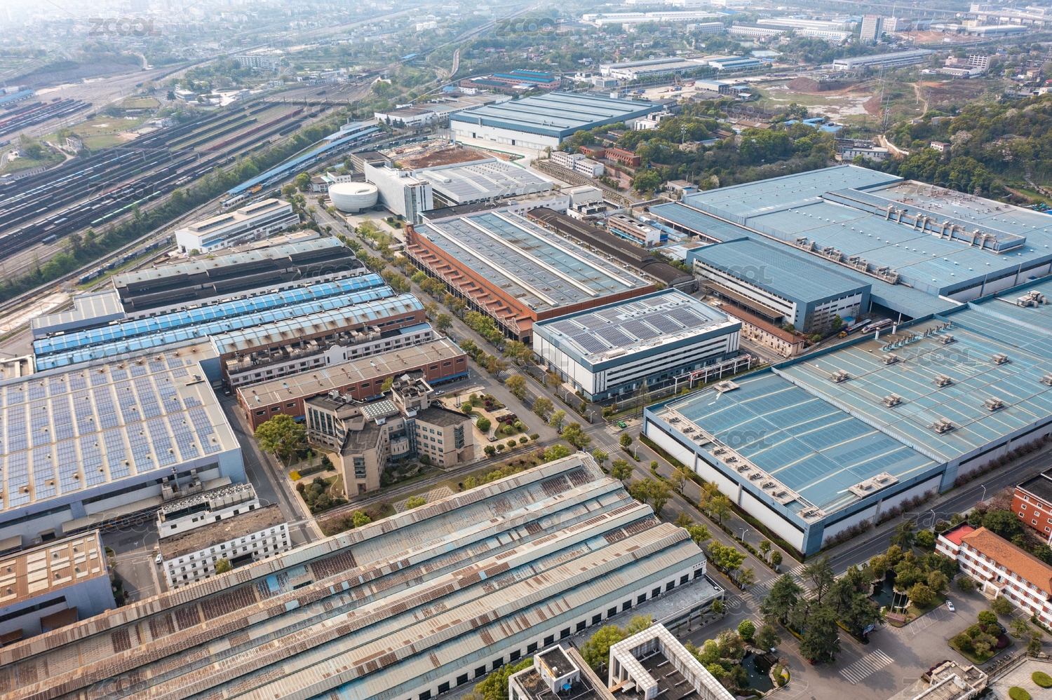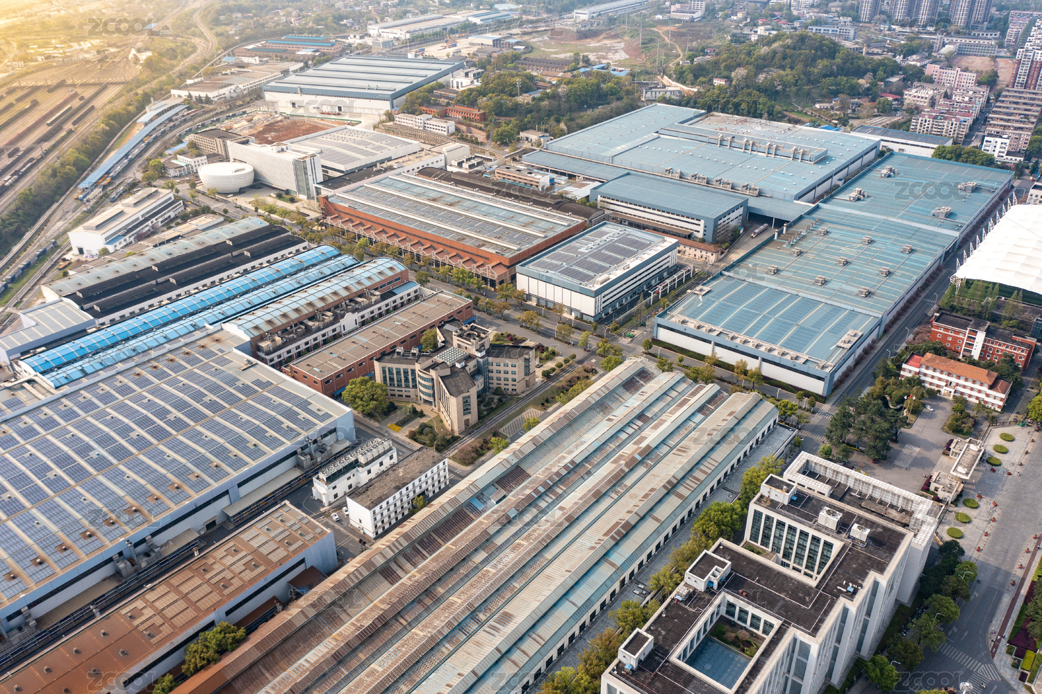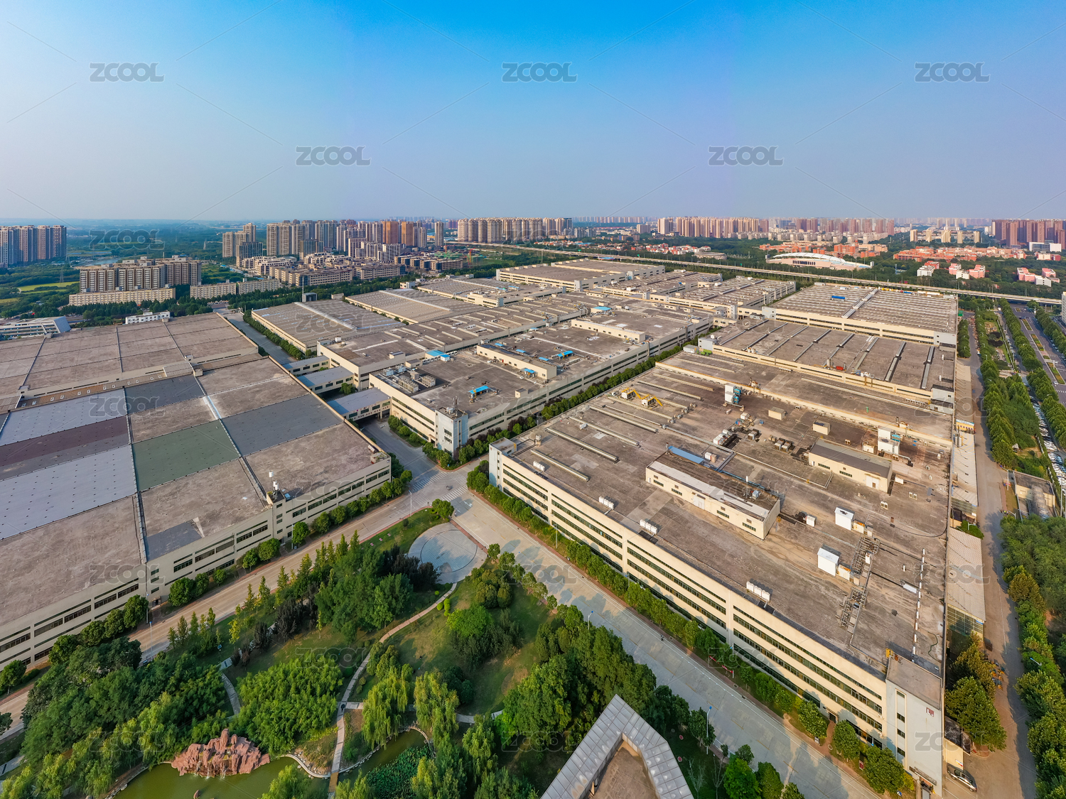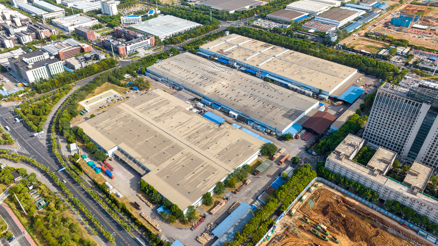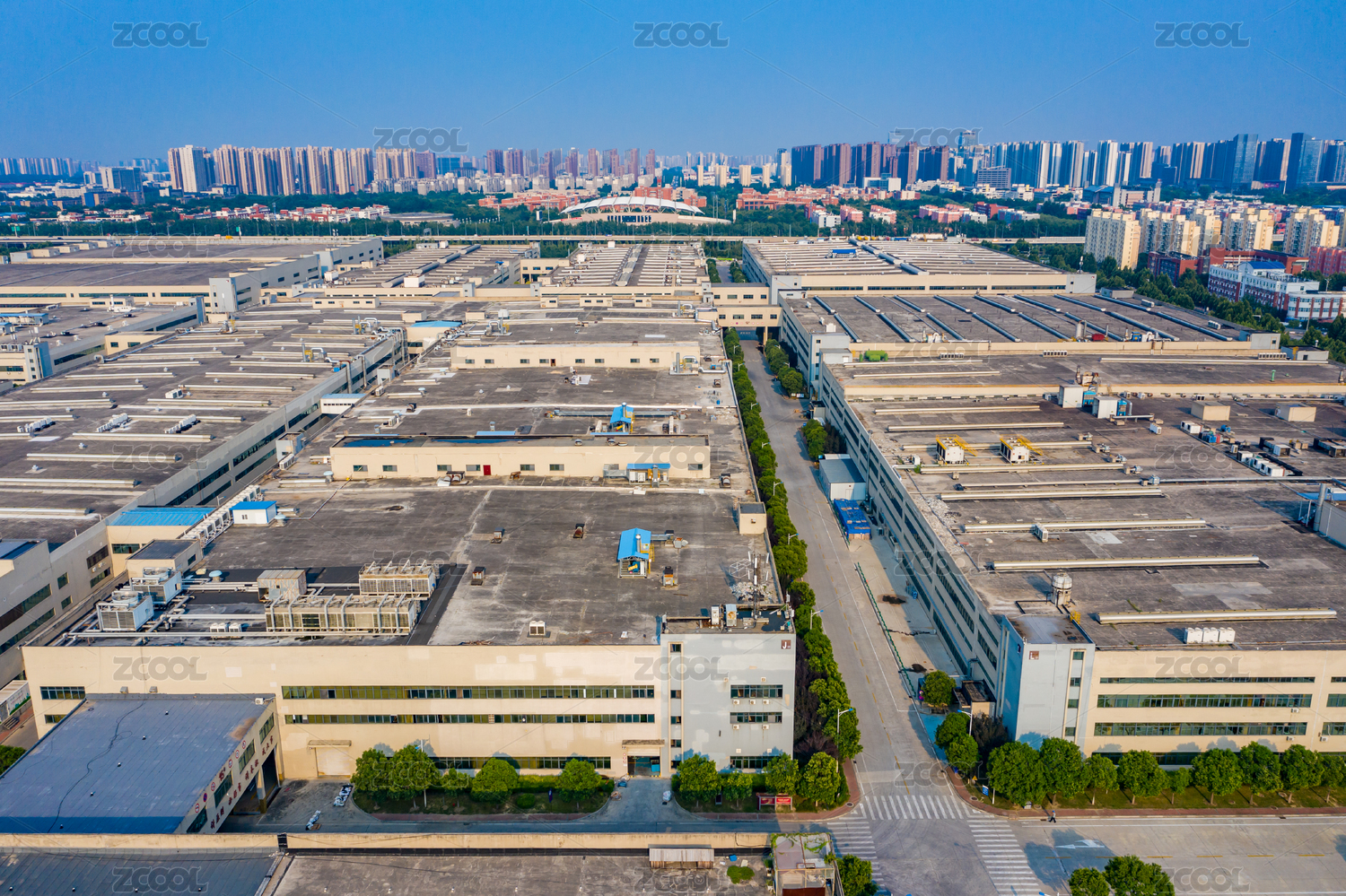 航拍电器产业园工厂流水线生产厂房仓库库房