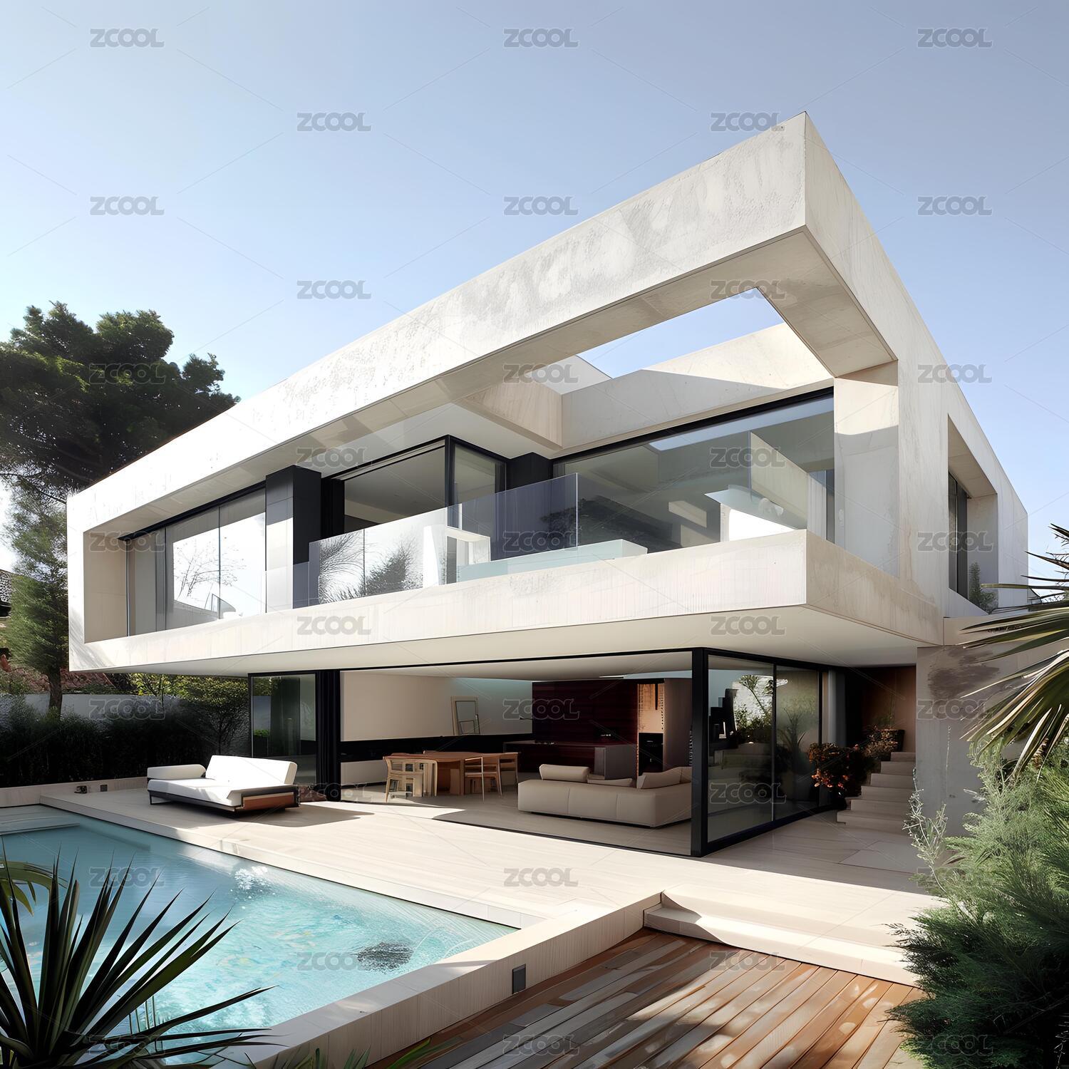 现代豪宅与泳池