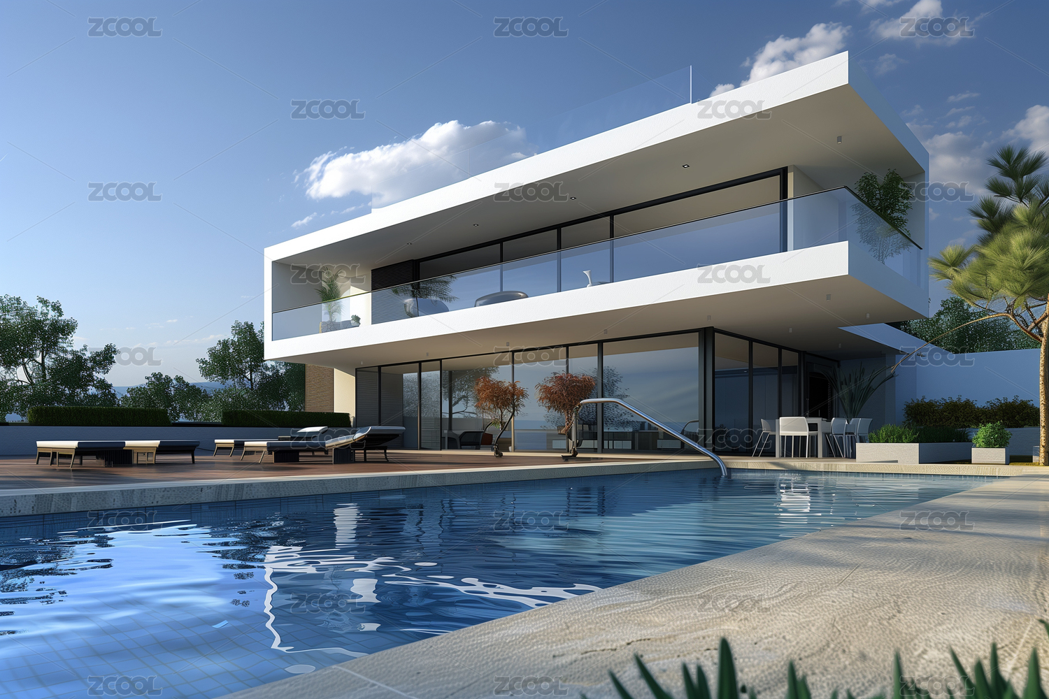 现代别墅泳池棕榈树