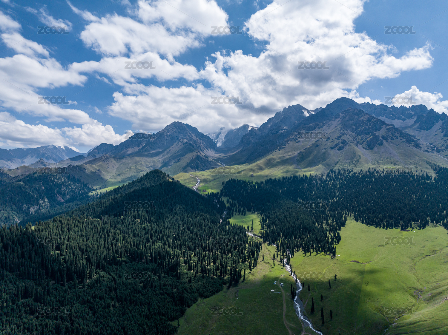 中国新疆伊犁昭苏夏塔草原雪山自然风光
