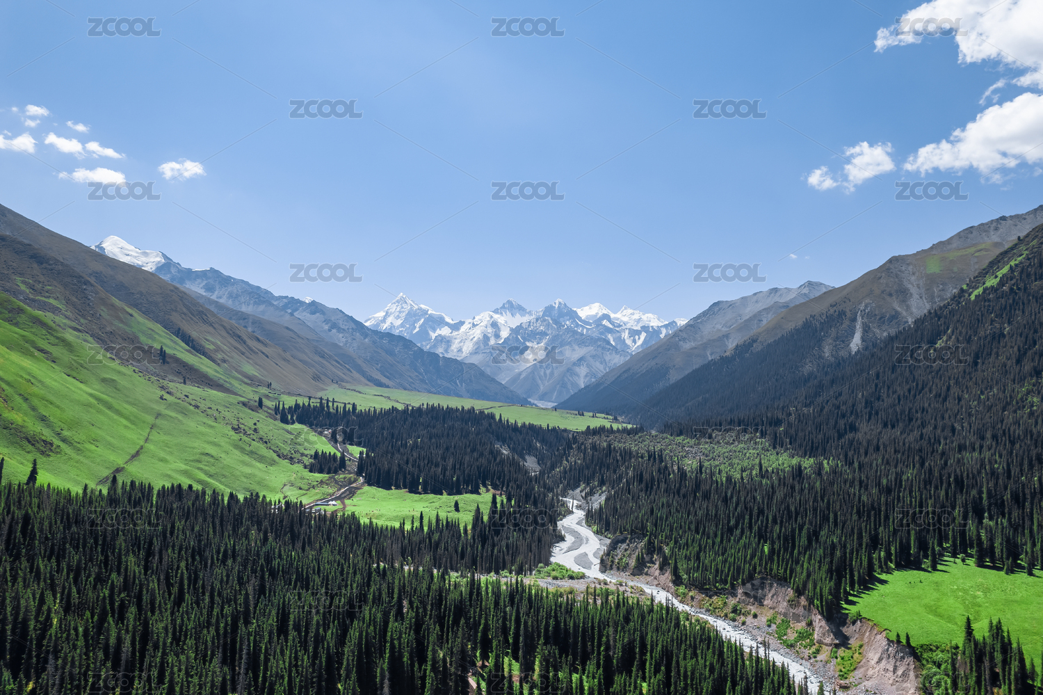 中国新疆伊犁夏塔景区冰川雪山森林自然风光