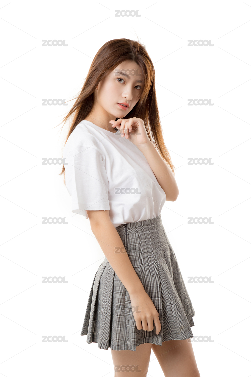 白色背景下的白色T恤美女大学生
