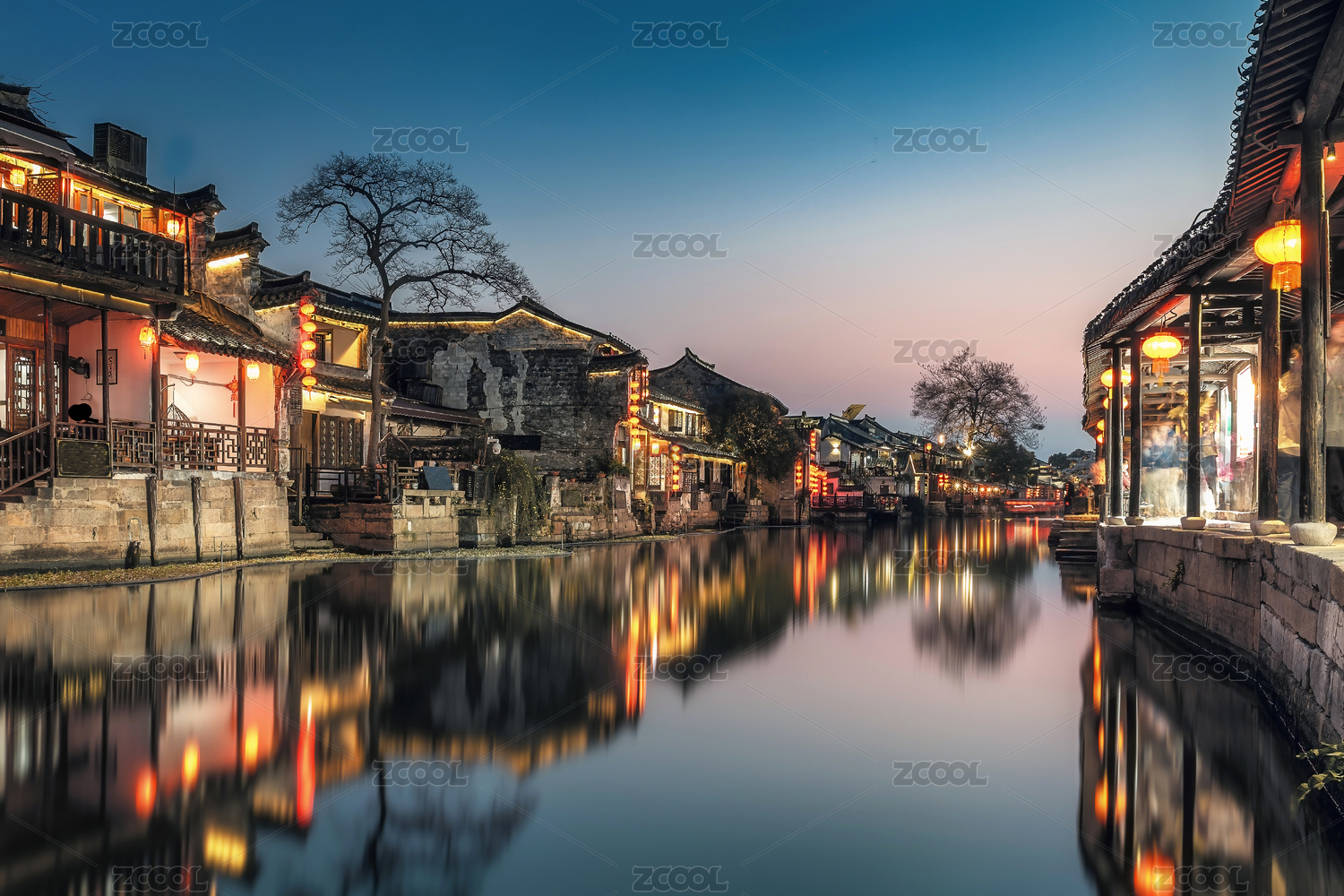 江南水乡古镇夜景