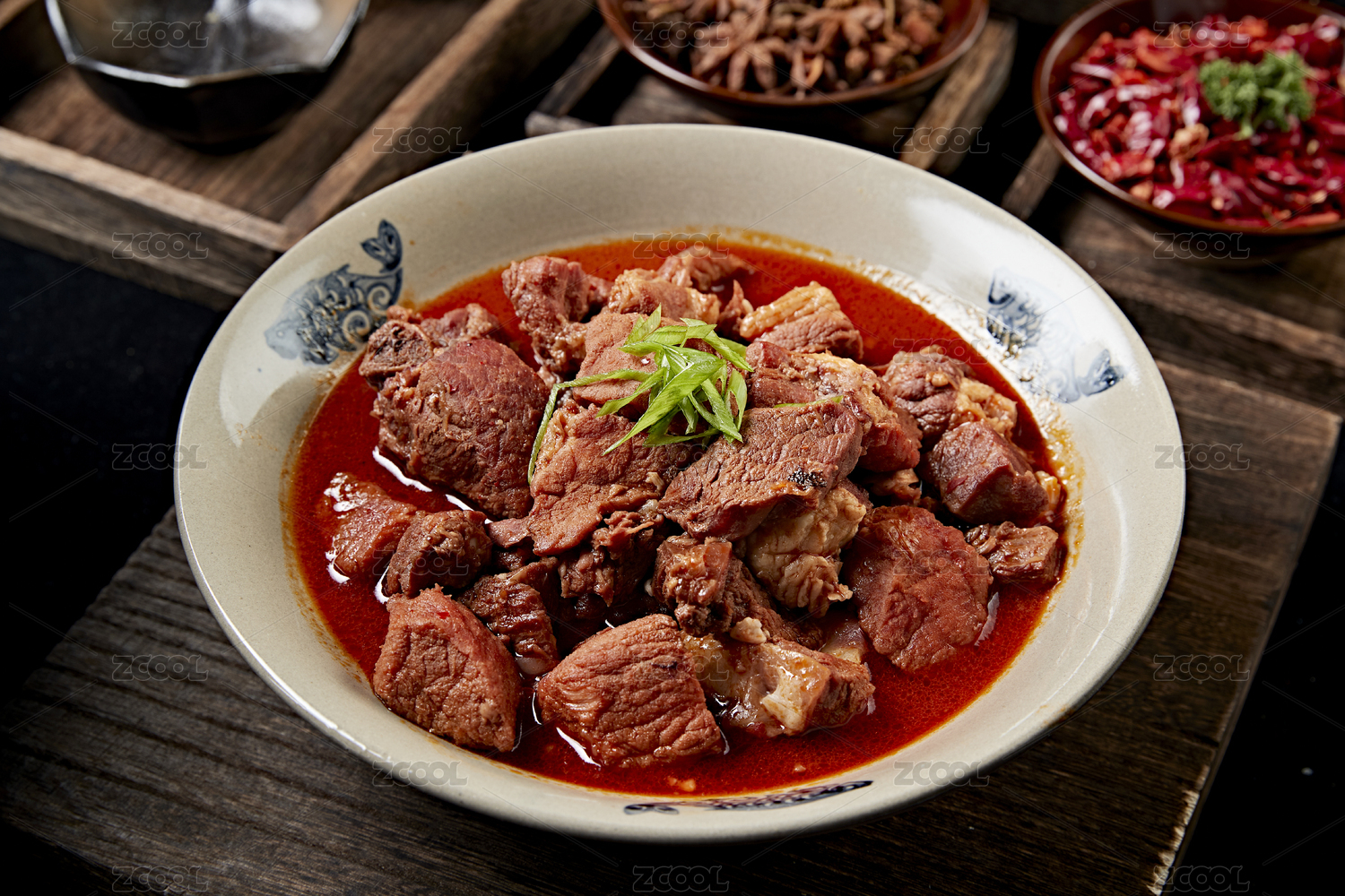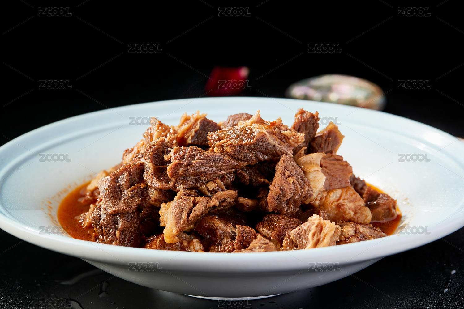 白色瓷盘装的红烧牛腱子