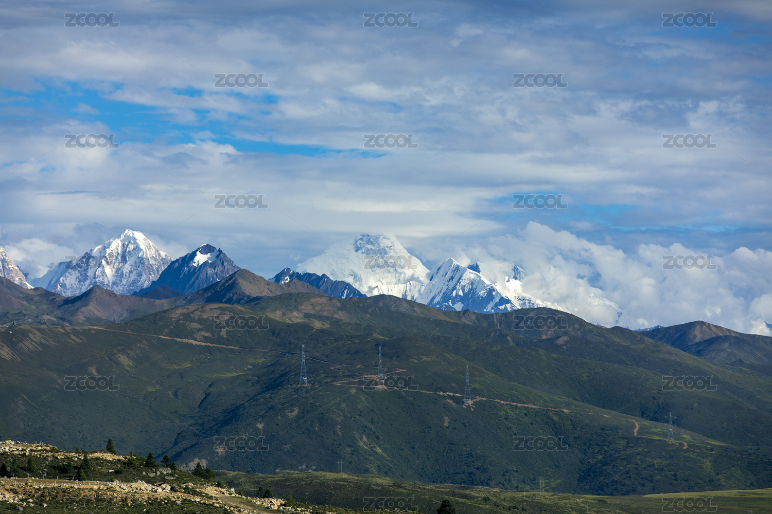 蓝天白云下的贡嘎雪山群