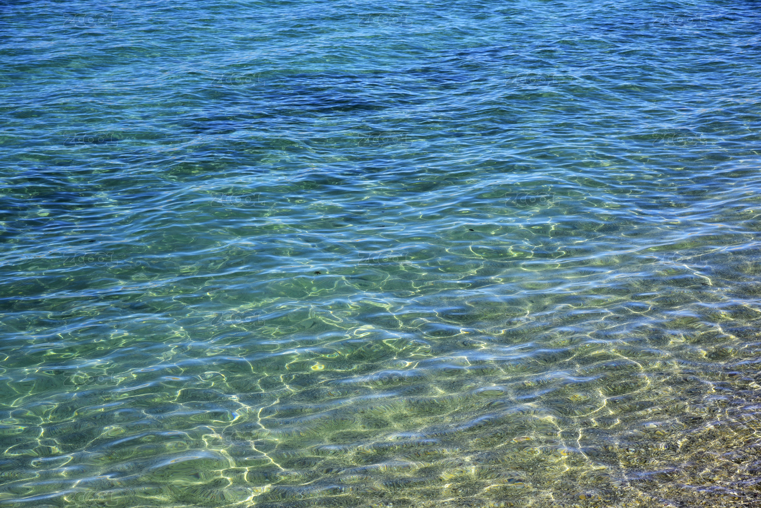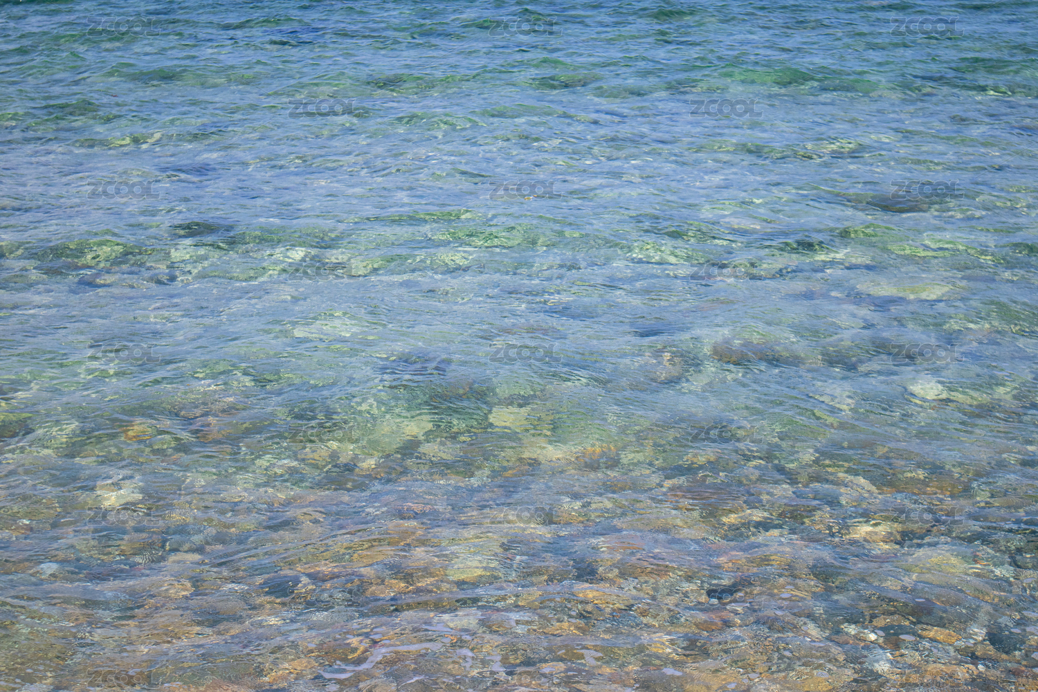 海水浅滩处透明的海水下五彩斑斓的礁石