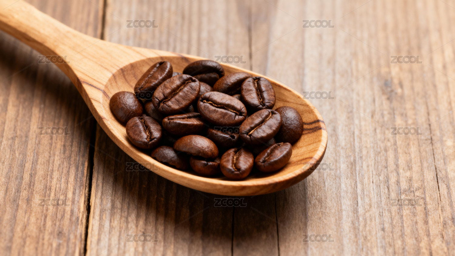 木勺中的咖啡豆特写