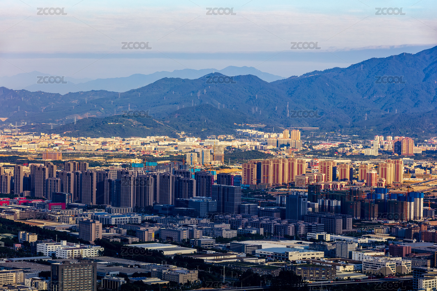 中国广东省深圳市龙岗区平湖建筑群傍晚风光
