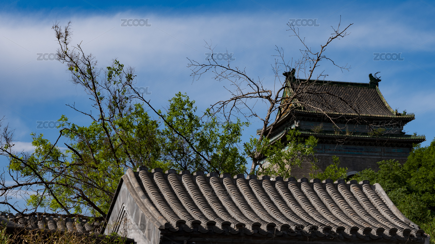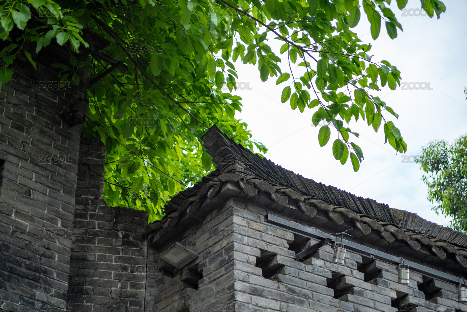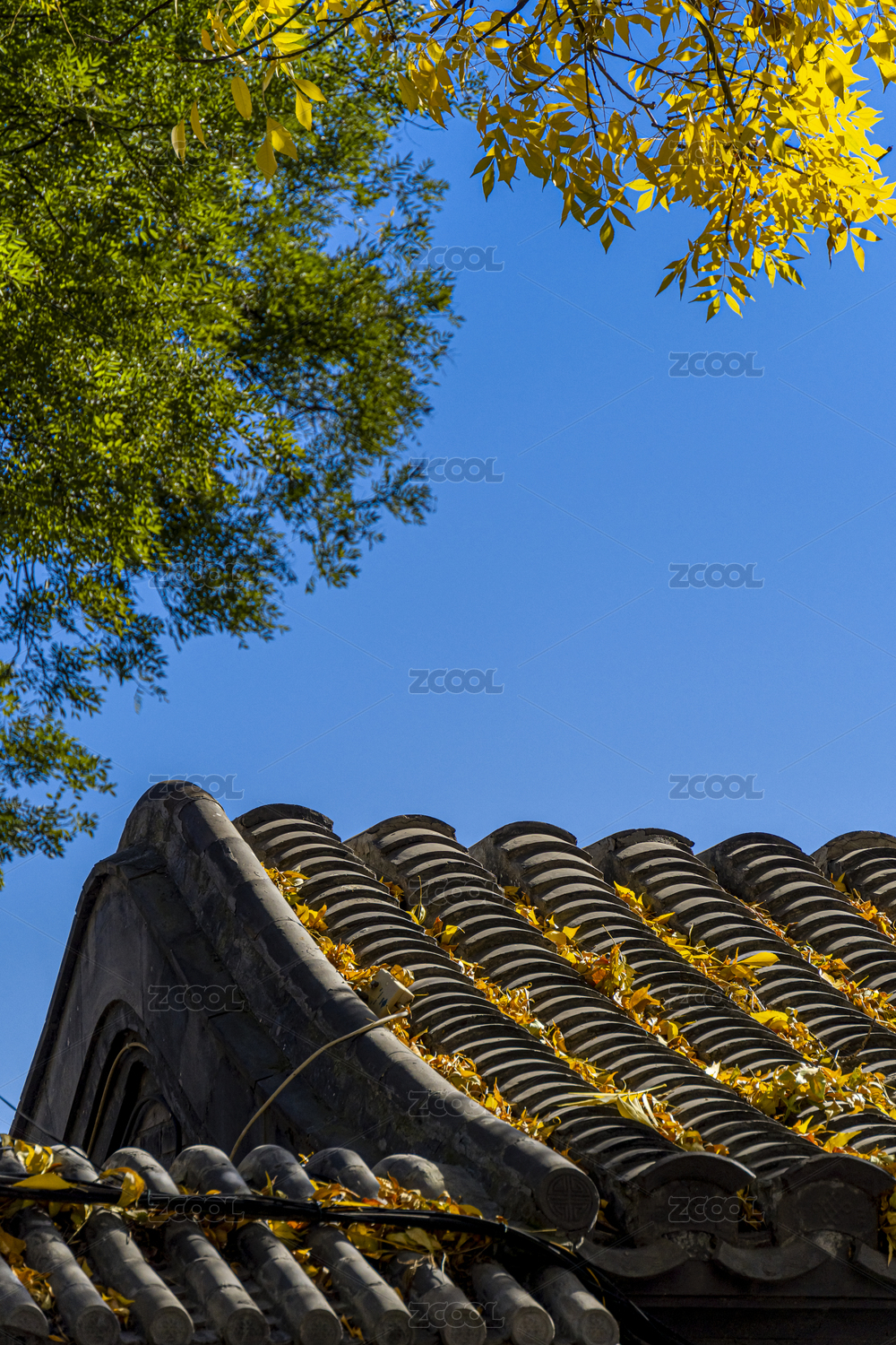 夏天的中国北京的北锣鼓巷胡同的建筑民居房