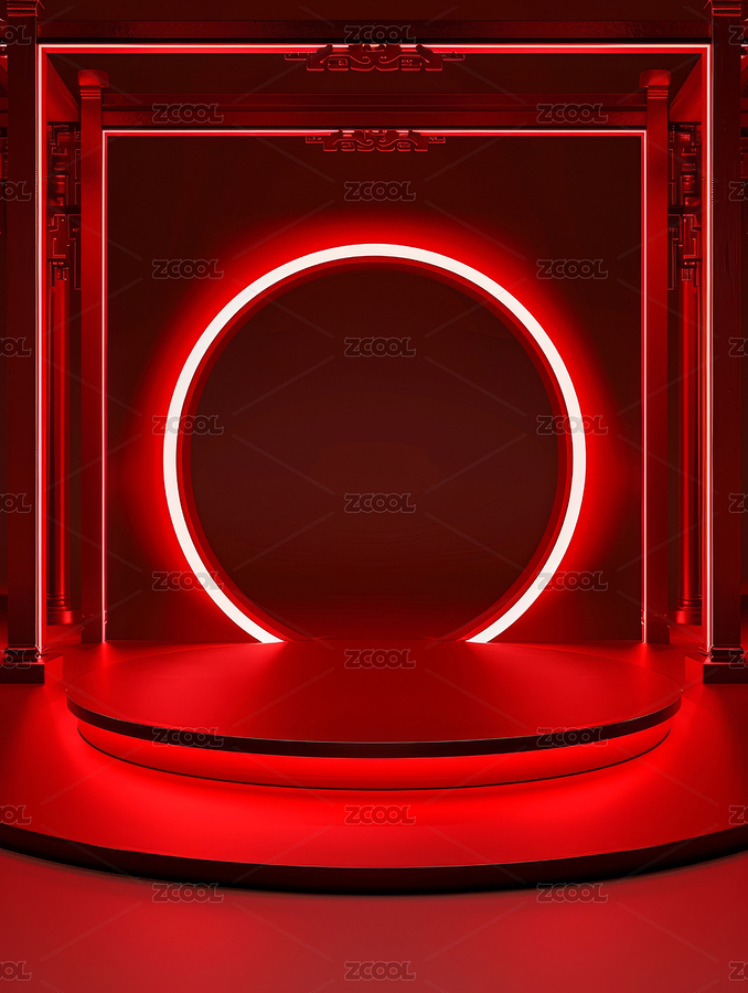 红色,中国风,圆形,展示台,舞台,背景,商务,设计,展览,简单