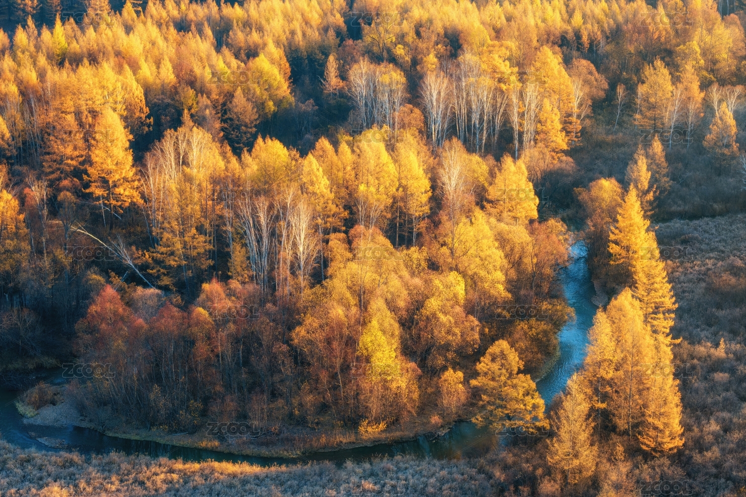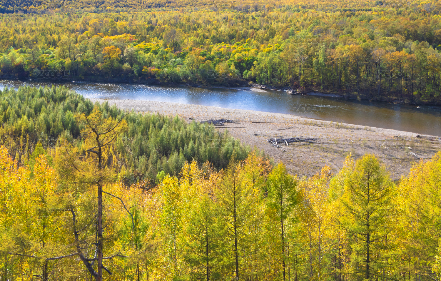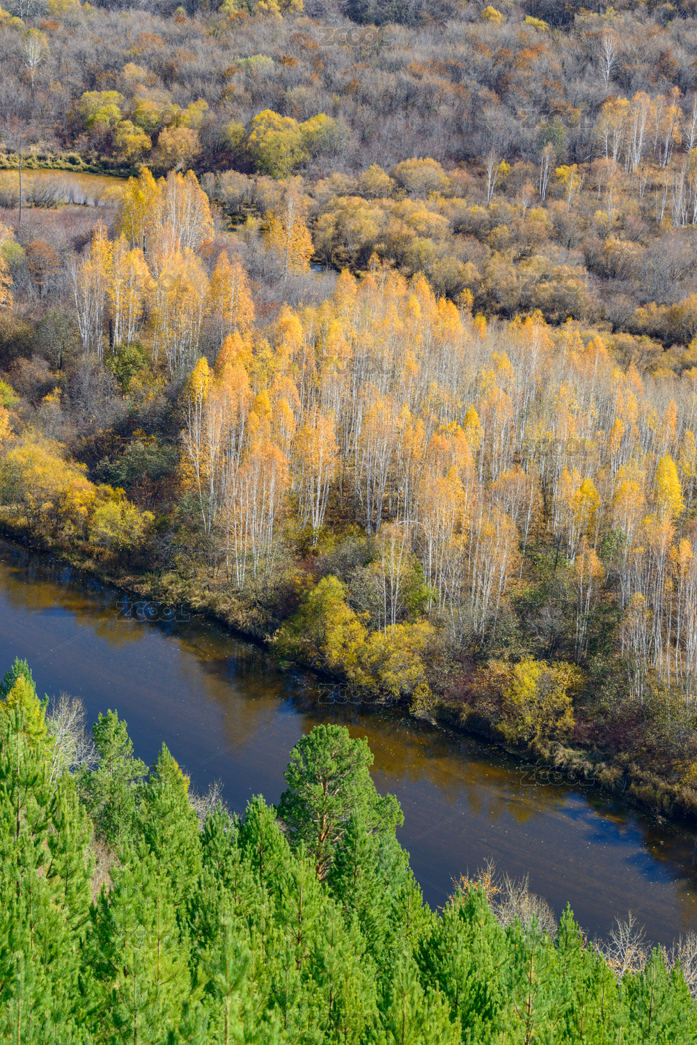 中国内蒙古呼伦贝尔大兴安岭原始森林秋景