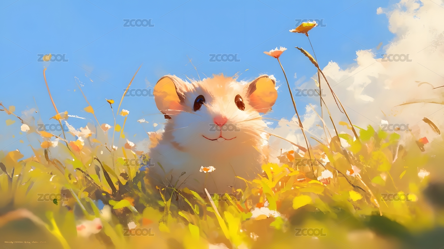 仓鼠可爱唯美野生动物3D卡通插画壁纸
