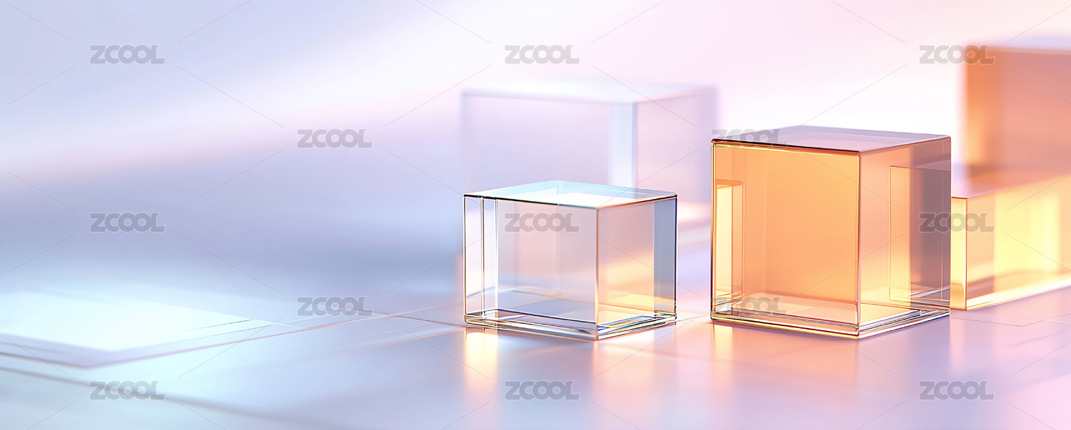 层叠排列荧光色立方体玻璃晶体3D立体插画