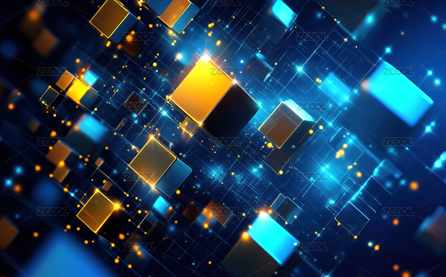梦幻蓝橙光点交织