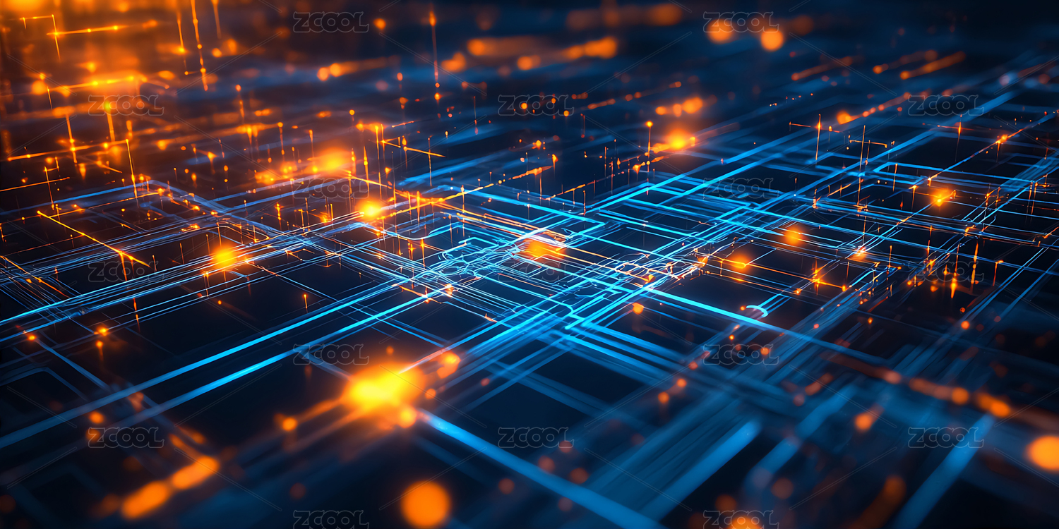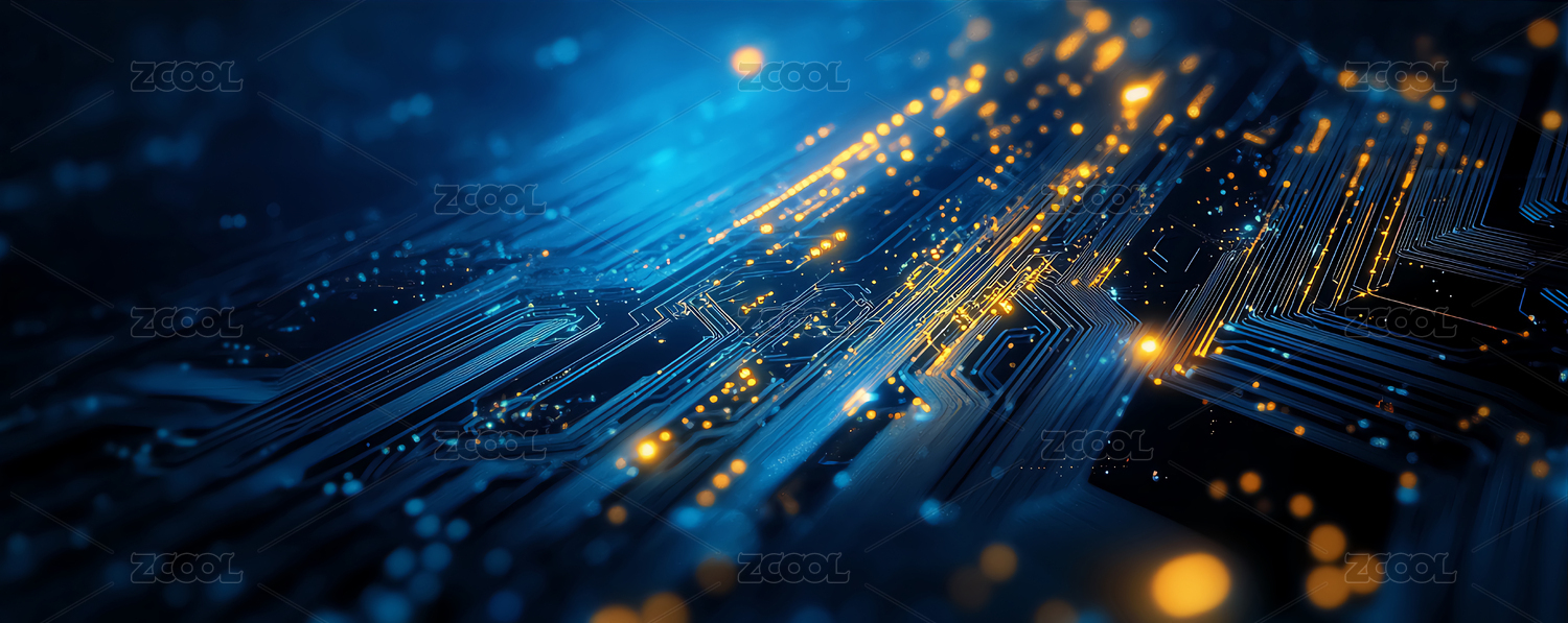 蓝色光效装饰的数字电路板,展示了科技世界