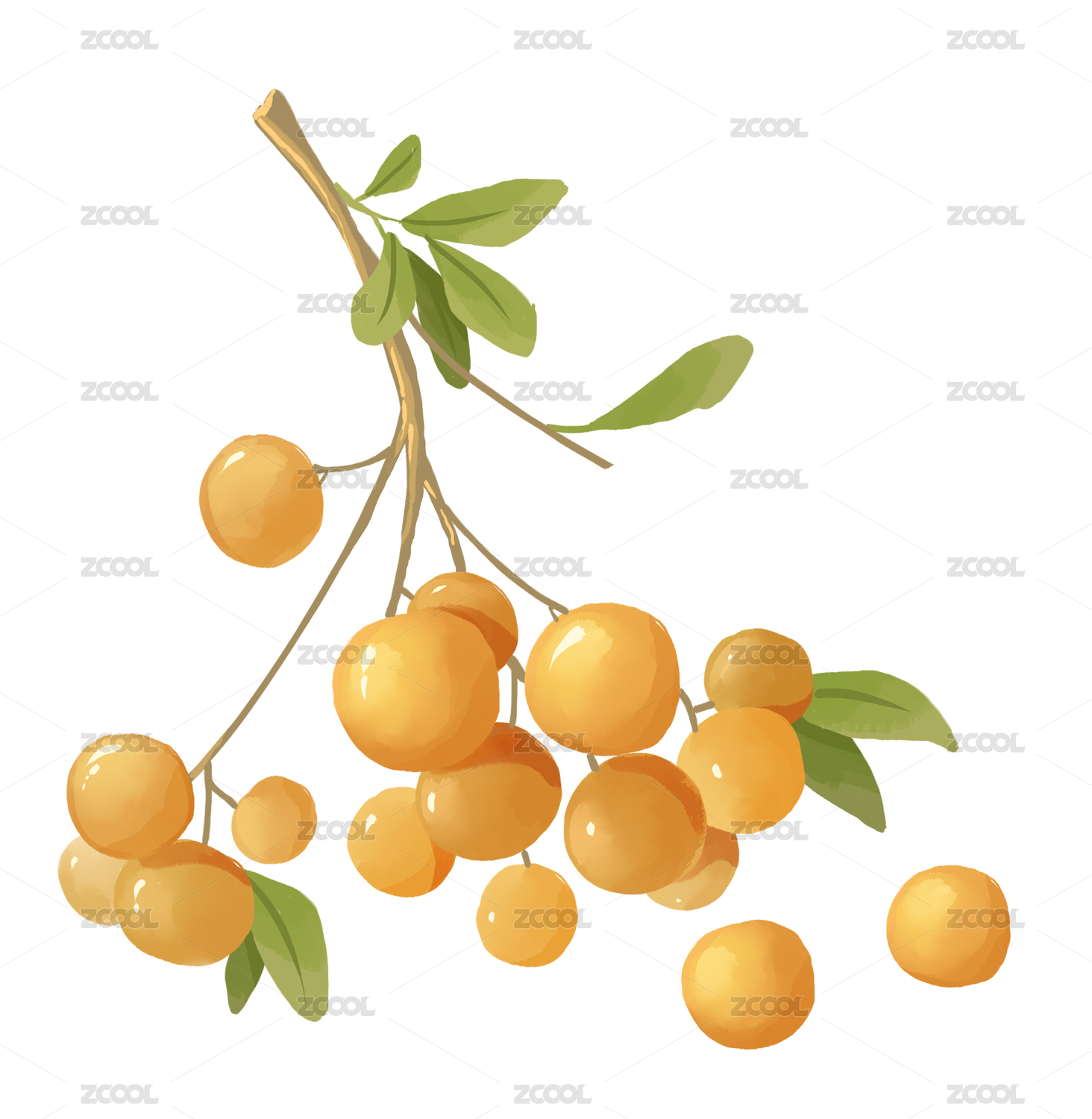 大红枣树枝插画