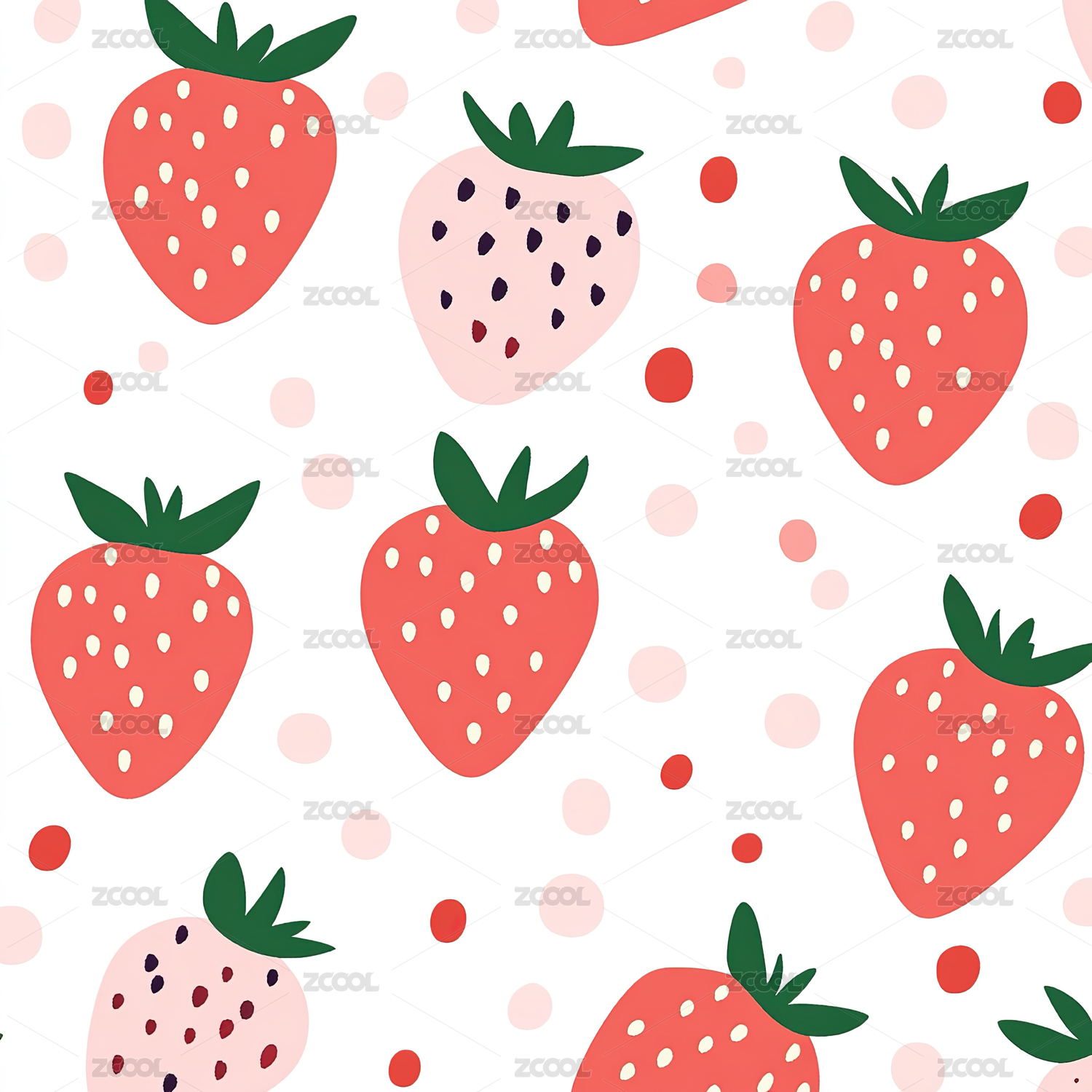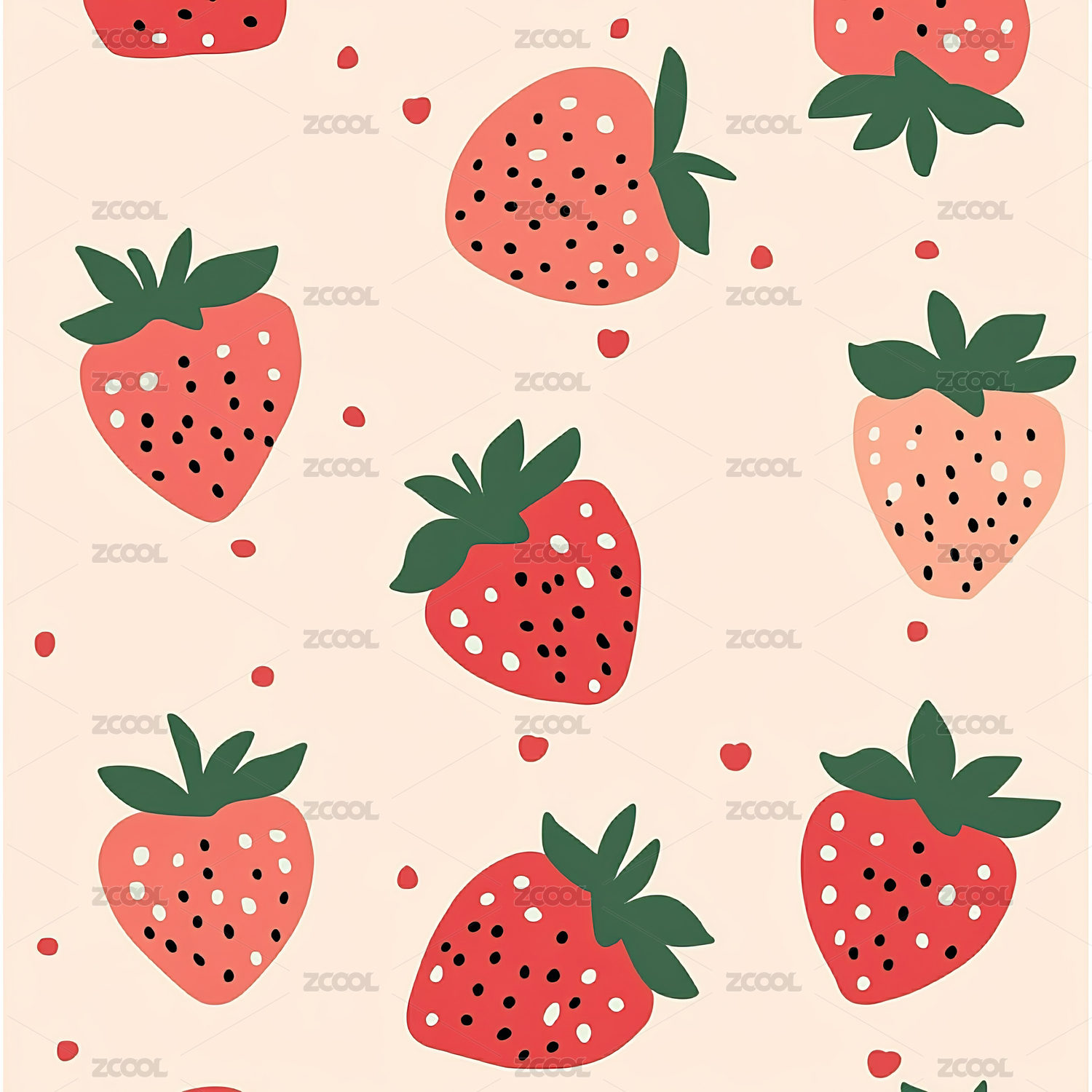 草莓图案爱心印花素材贴纸文创家纺壁纸