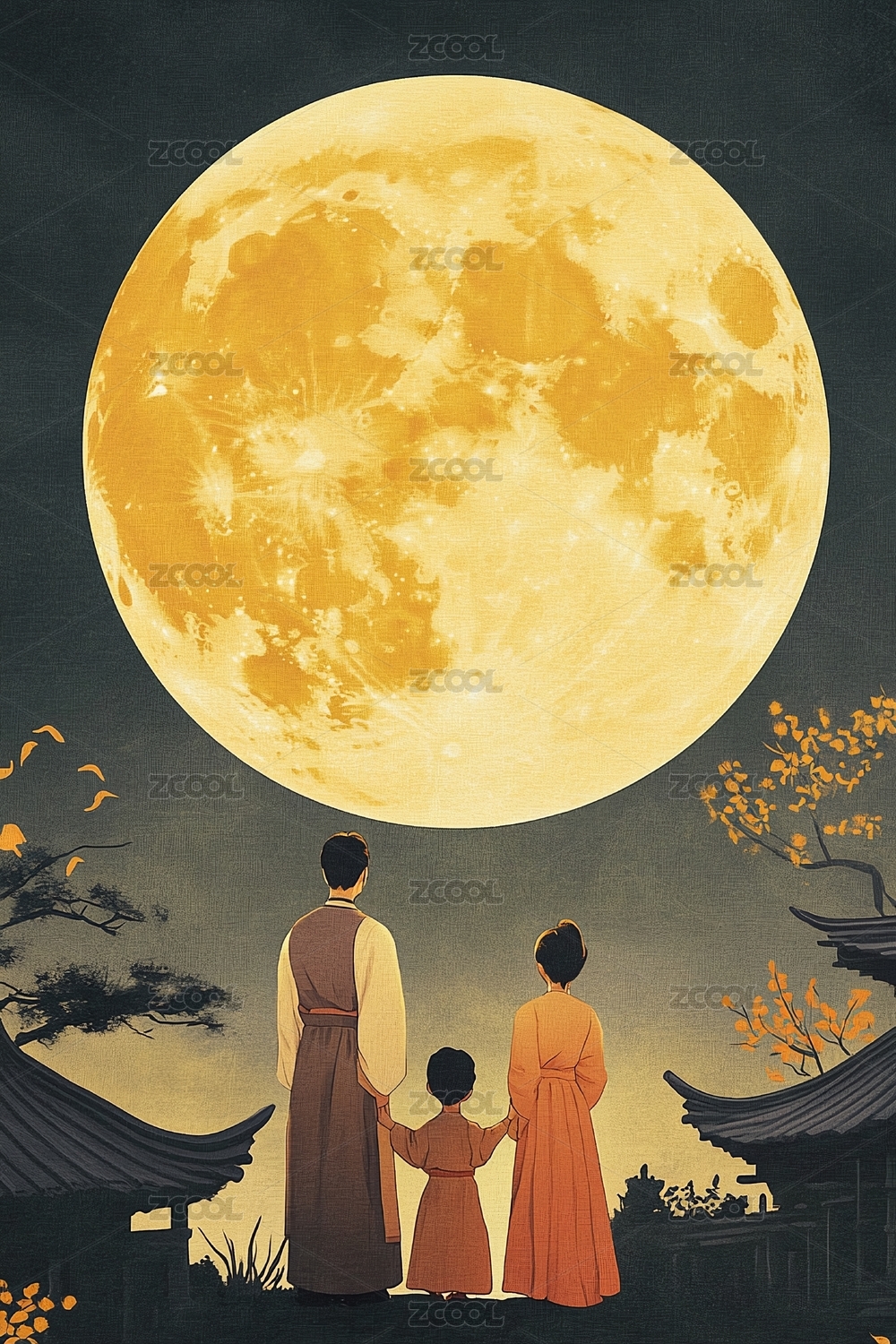 中秋节家人团聚古风插画