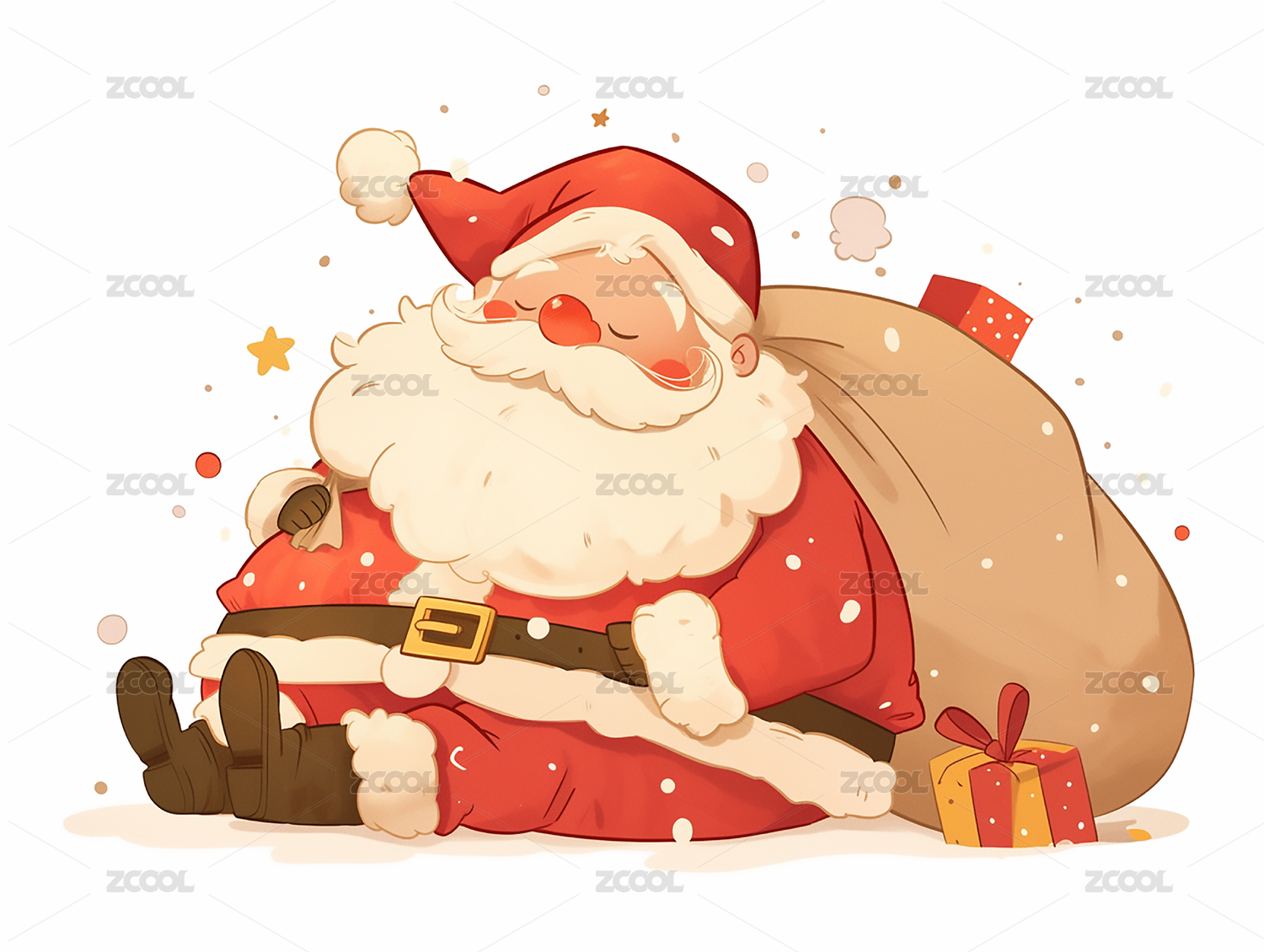 卡通圣诞风格圣诞老人T恤装饰图案插画
