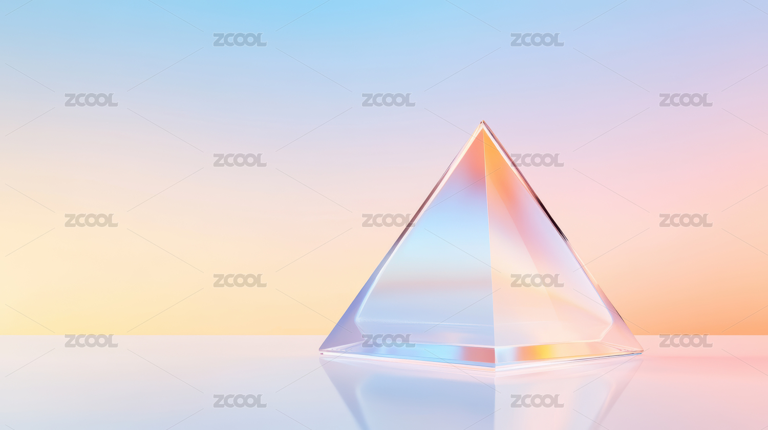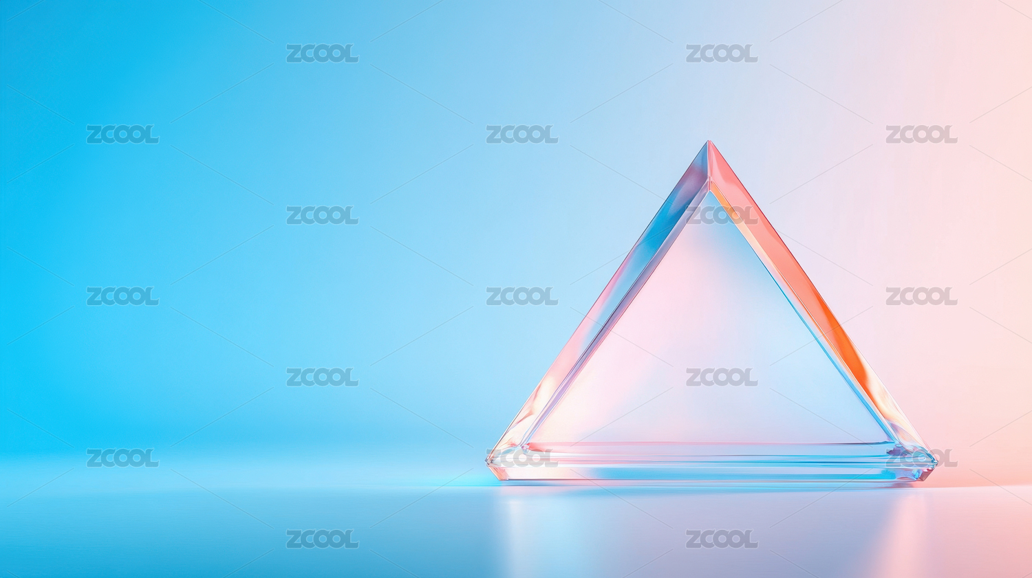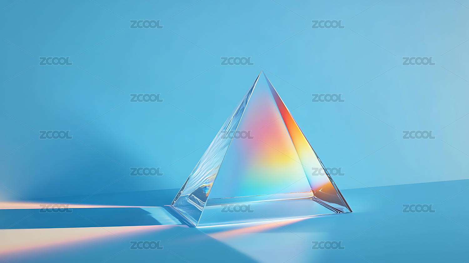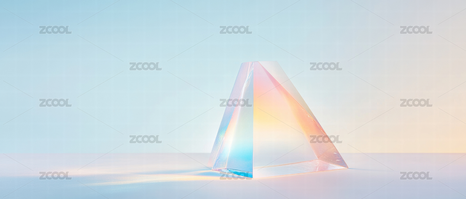 透明三角形棱镜在彩色背景上