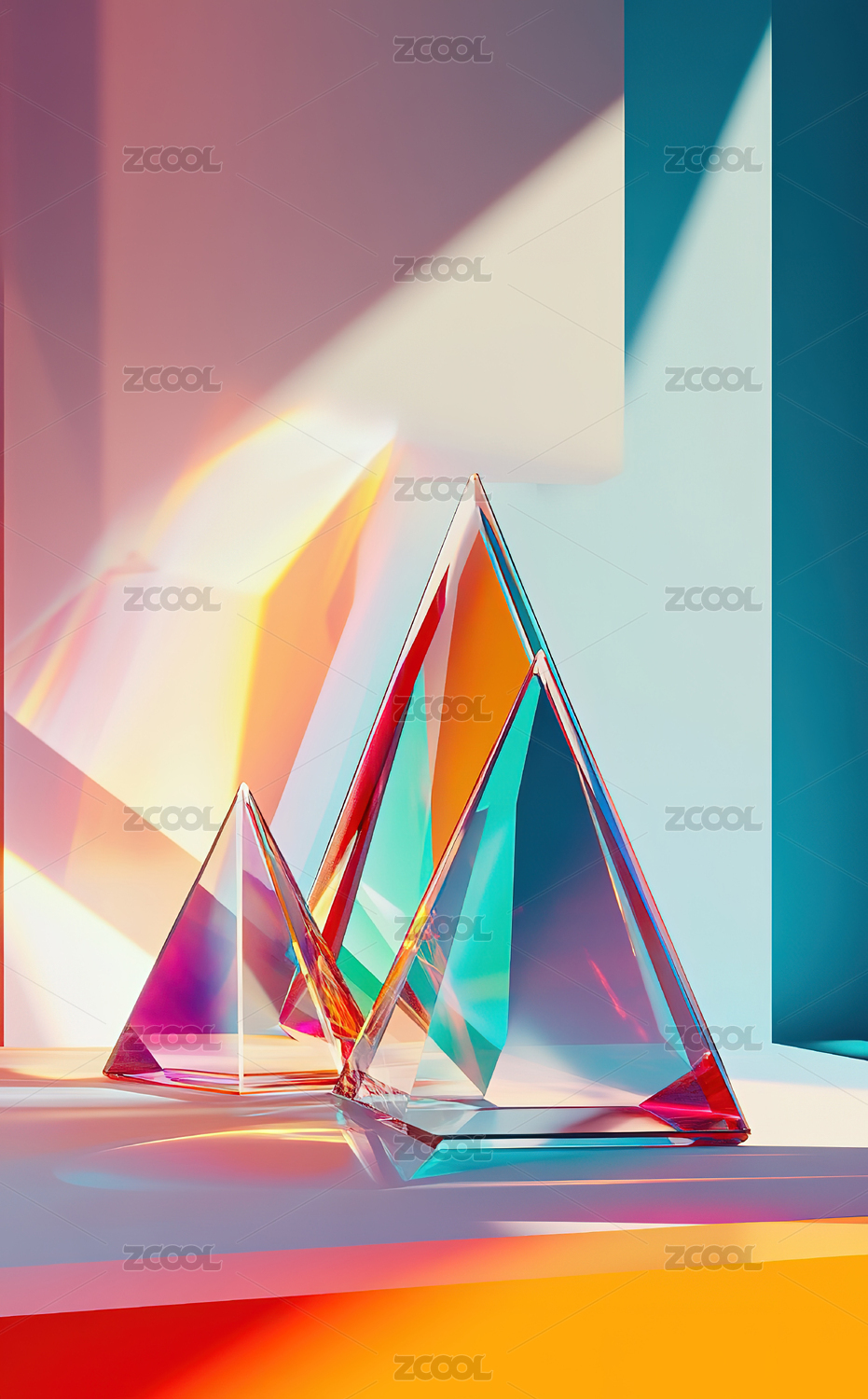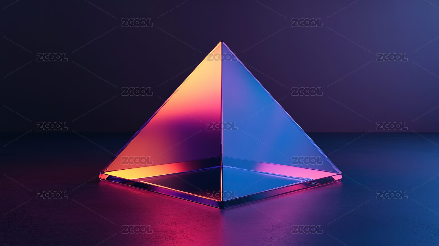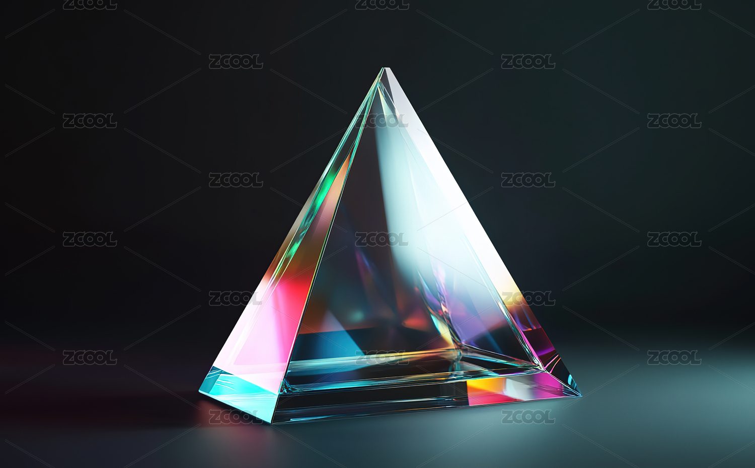 透明三角形棱镜在彩色背景上