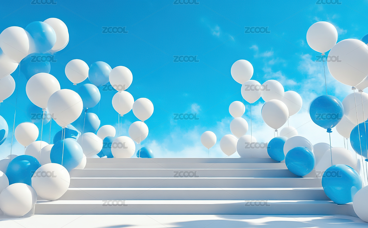 蓝色天空背景下的彩色气球