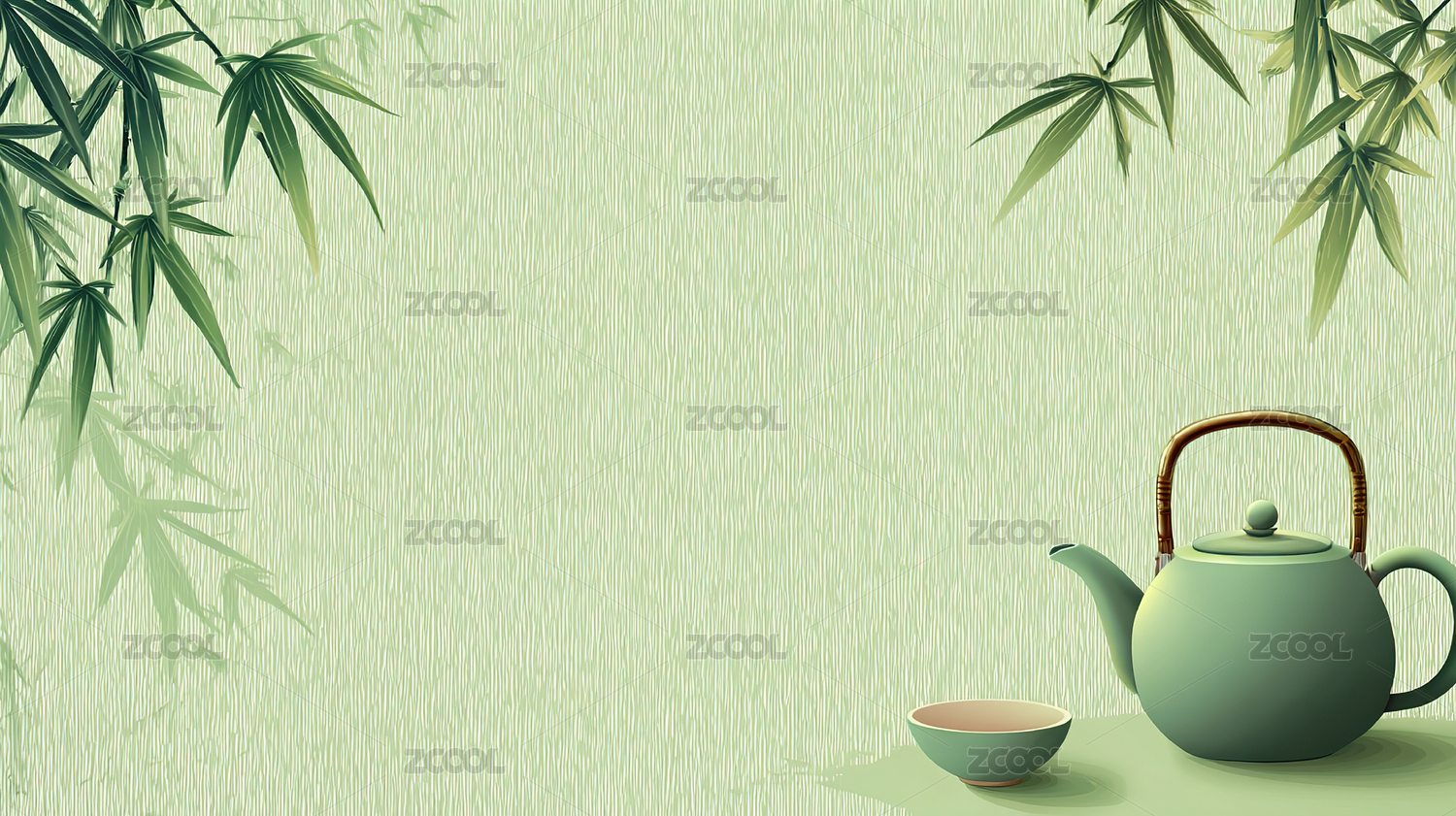 茶壶茶杯和竹叶插画