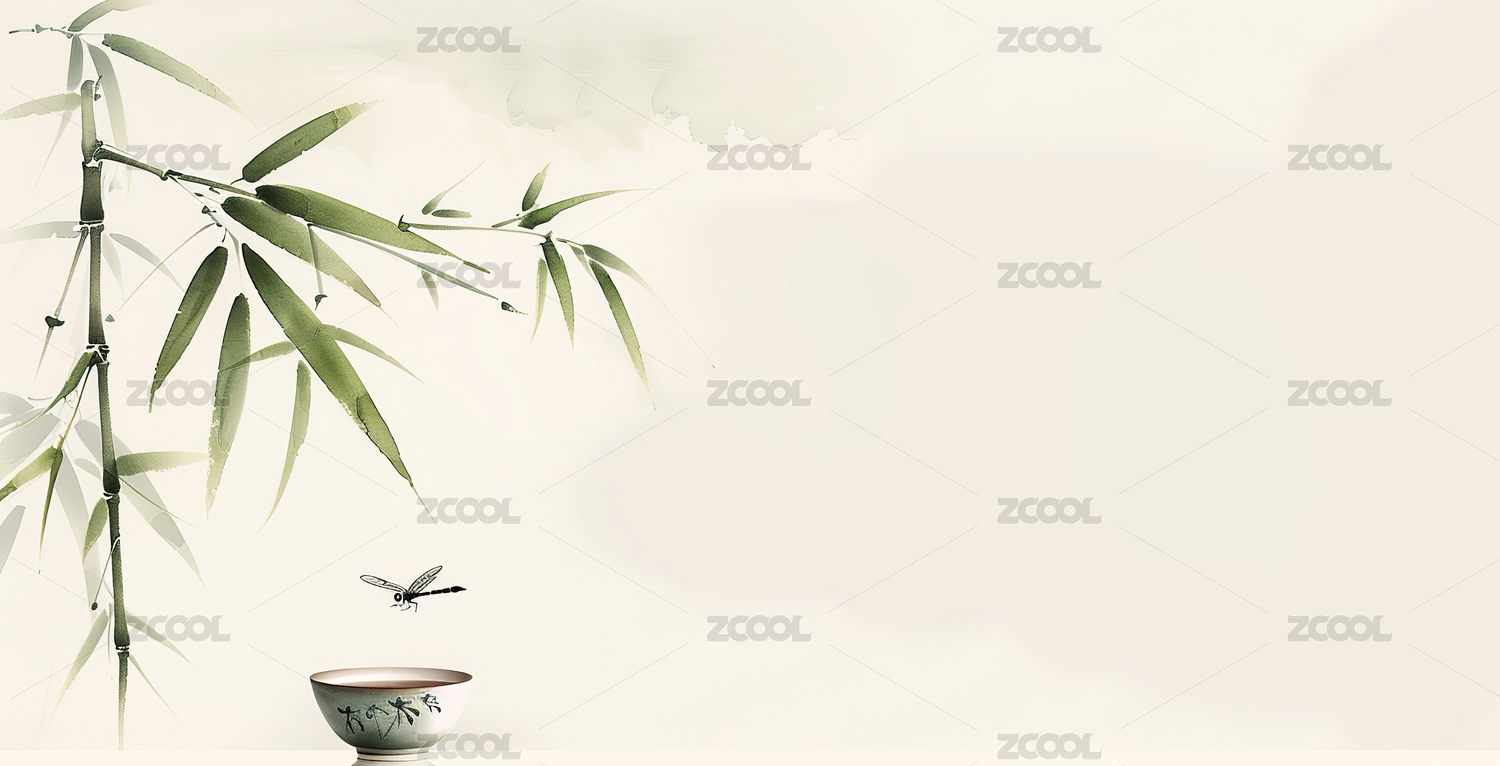 茶具与水墨画背景