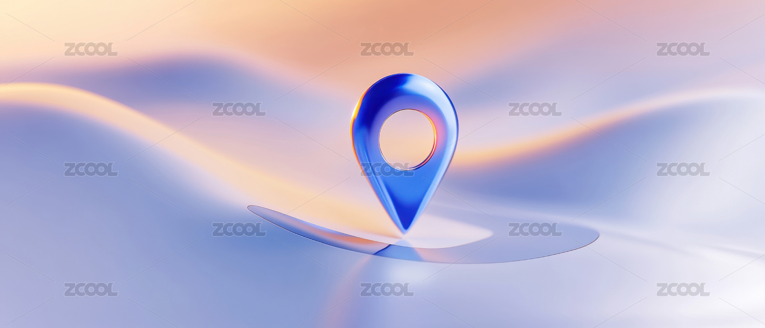 地图定位标志与白色波浪背景