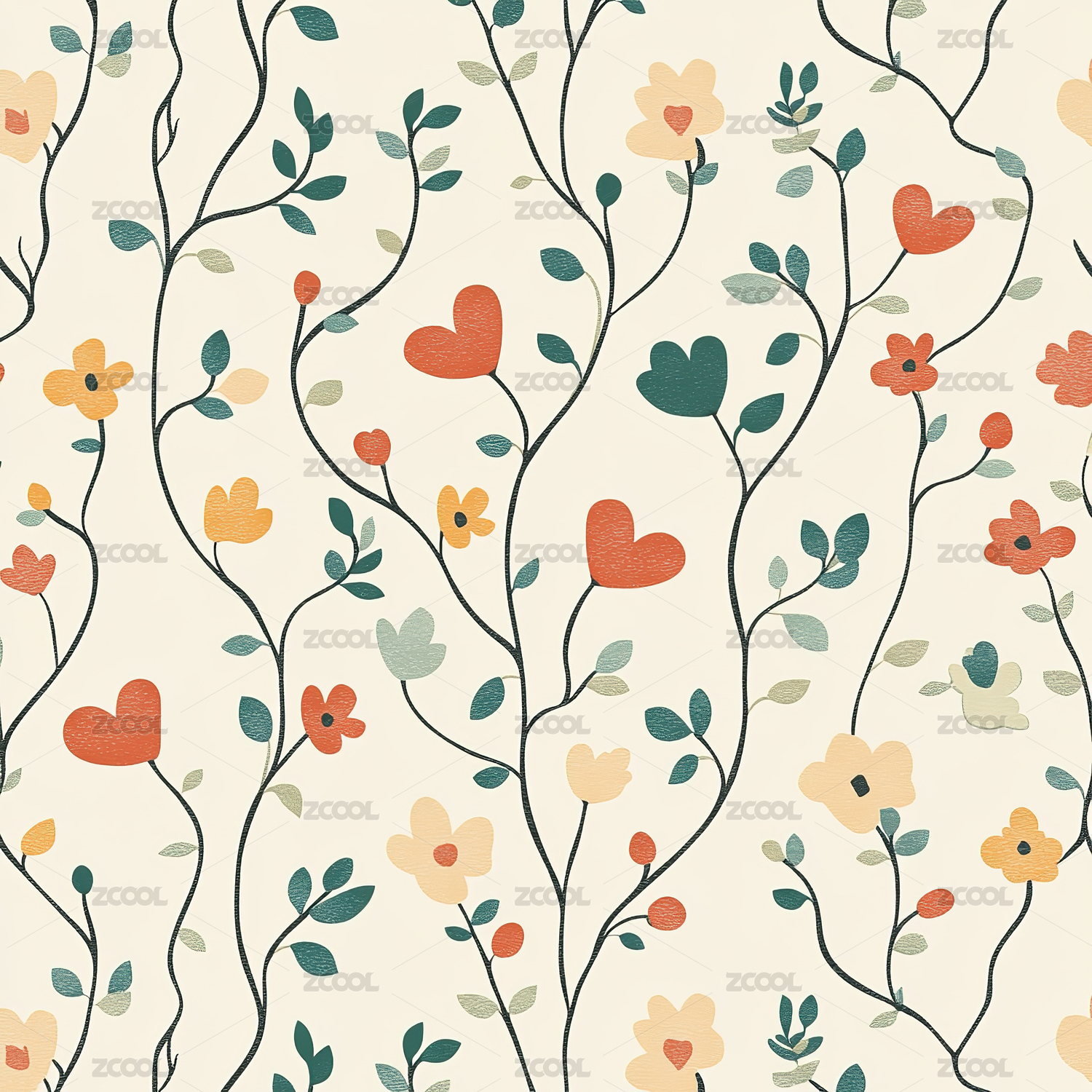 彩色线条花卉重复无缝图案纺织品装饰背景