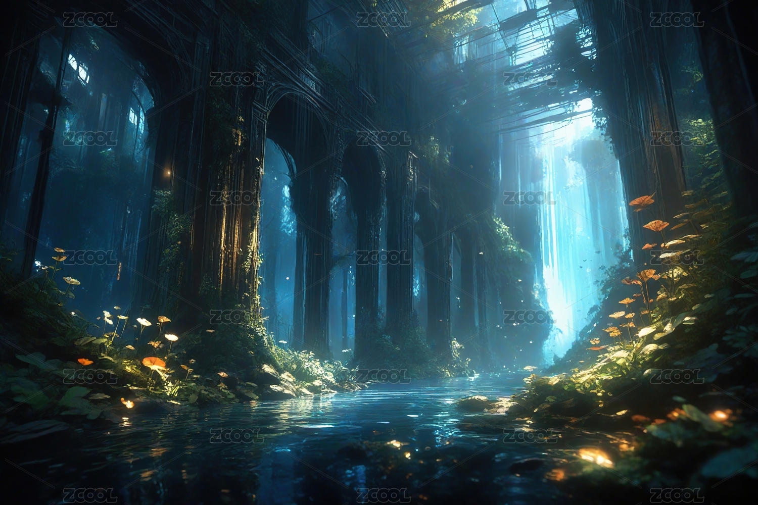 建筑外部,旅行,户外,历史,夜晚,AI数字艺术,拱门,教堂,天空,树