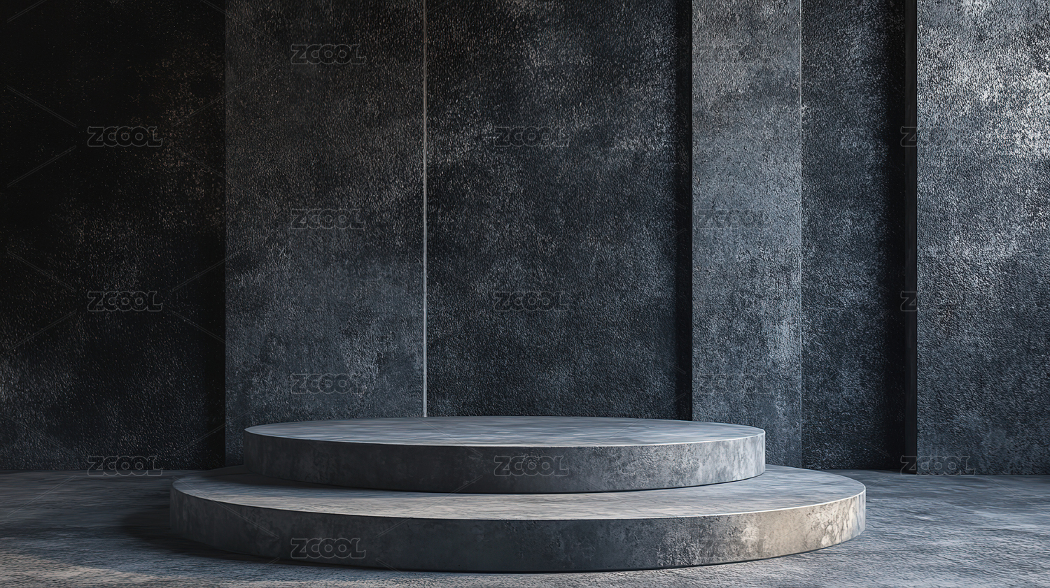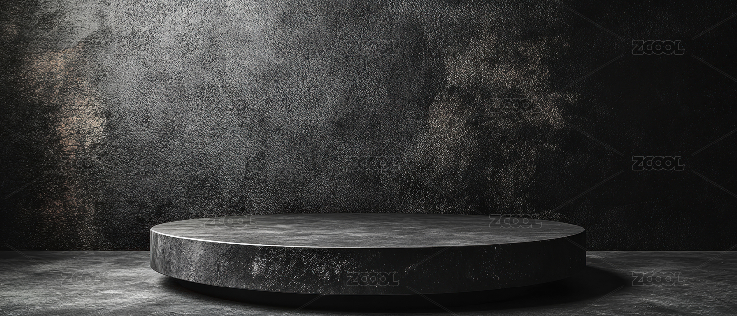 黑色混凝土背景下的圆形讲台