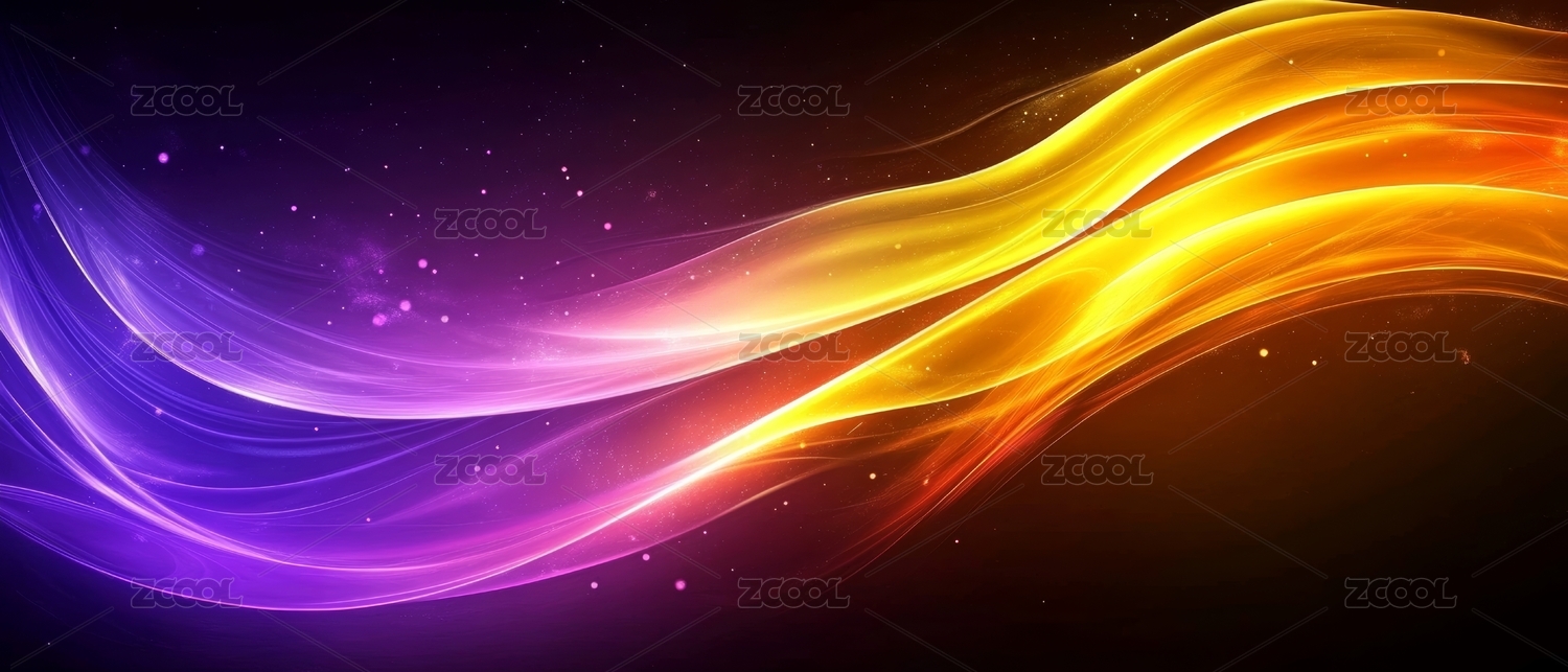 蓝色金色渐变的波浪线条黑色背景