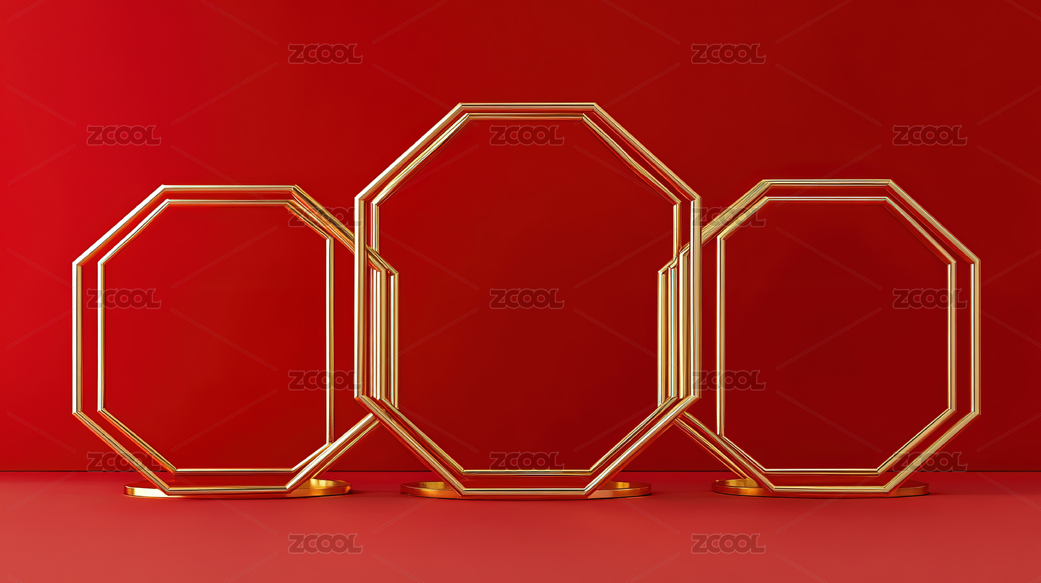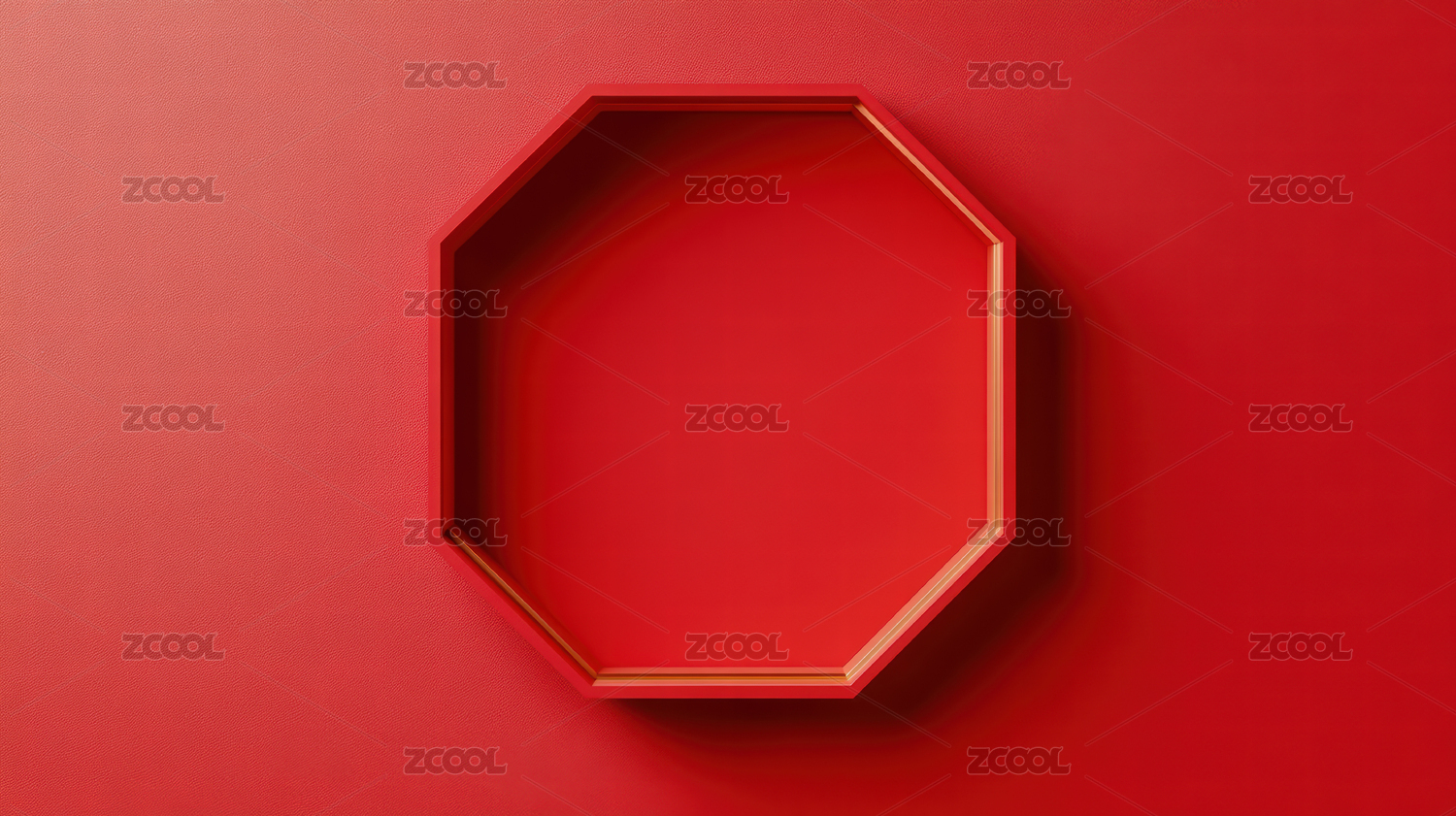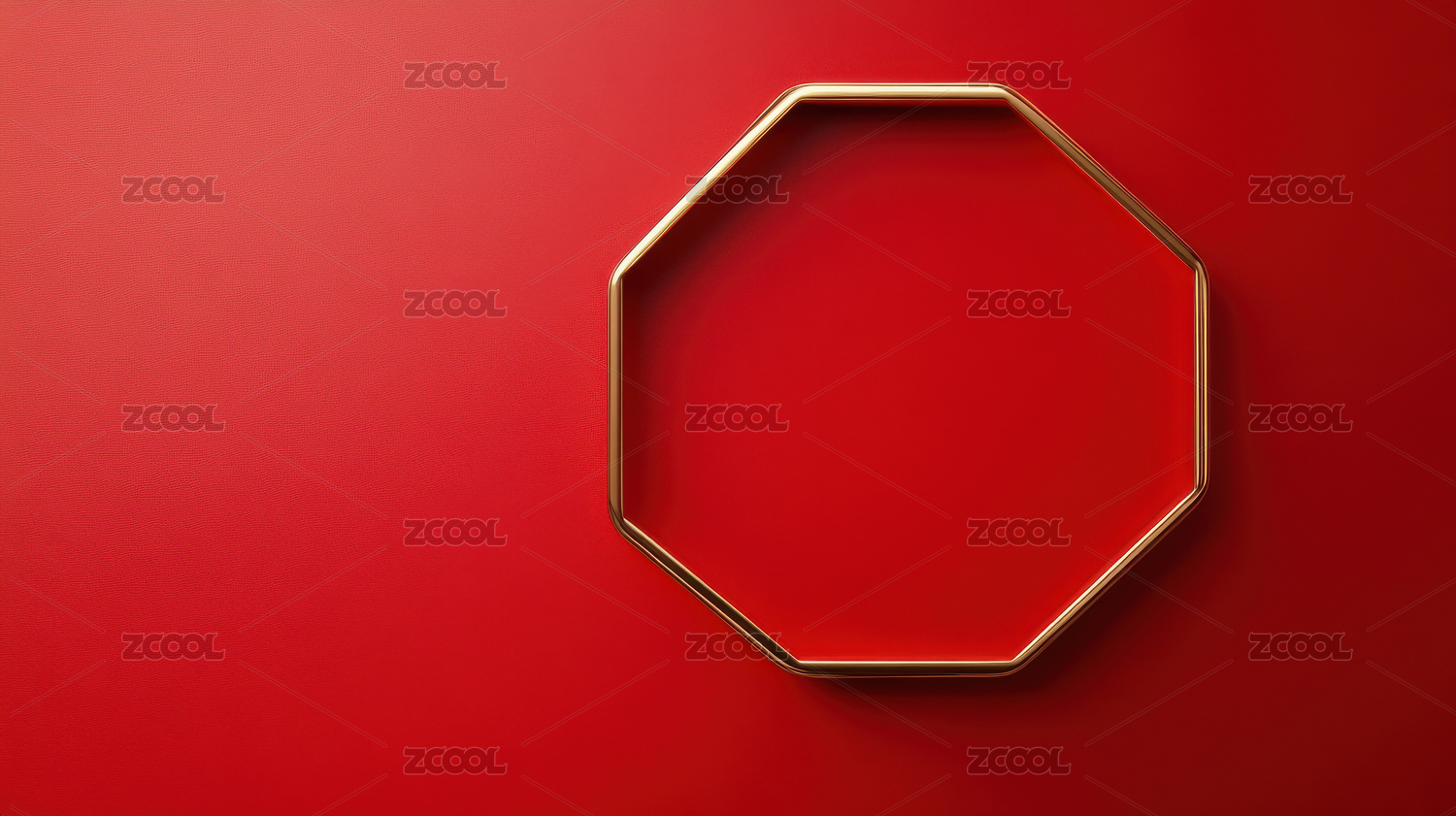 红色背景上的金色八边形框架