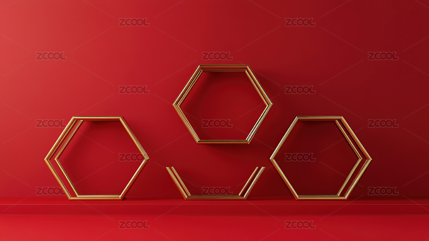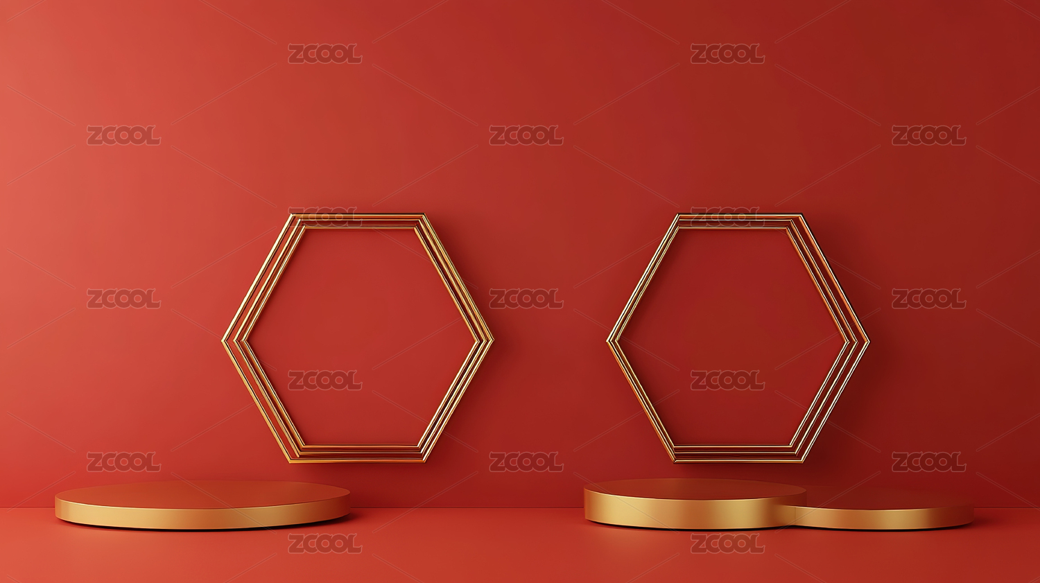 红色六边形展台装置