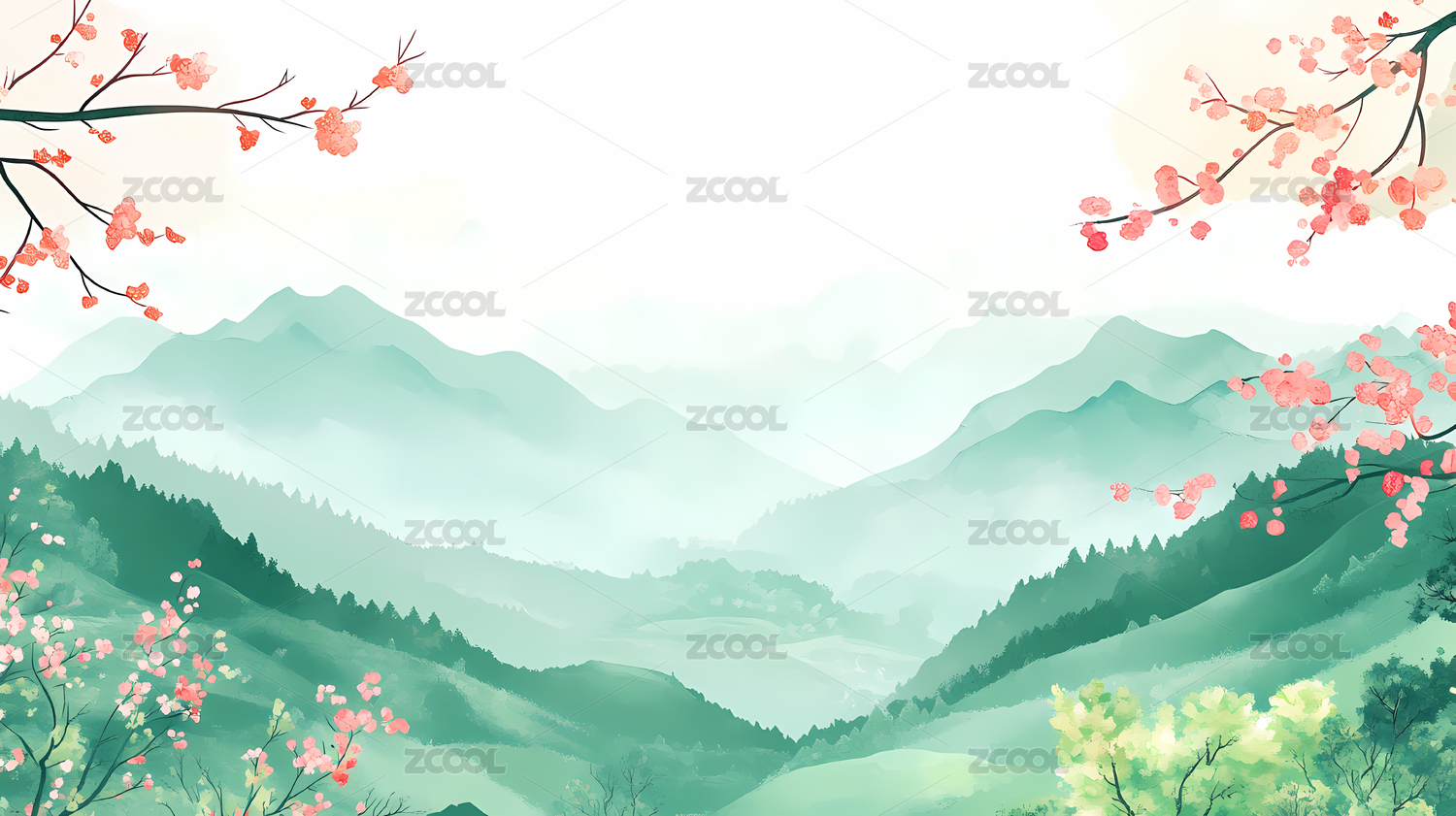 自然,插画,植物,云,天空,夏天,自然美,背景,绿色,宁静