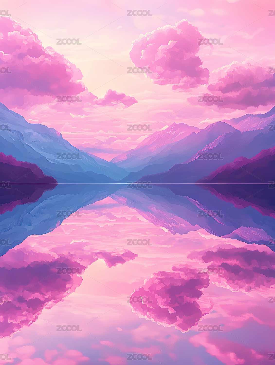 山和湖风景插画抽象艺术装饰画手机端海背景