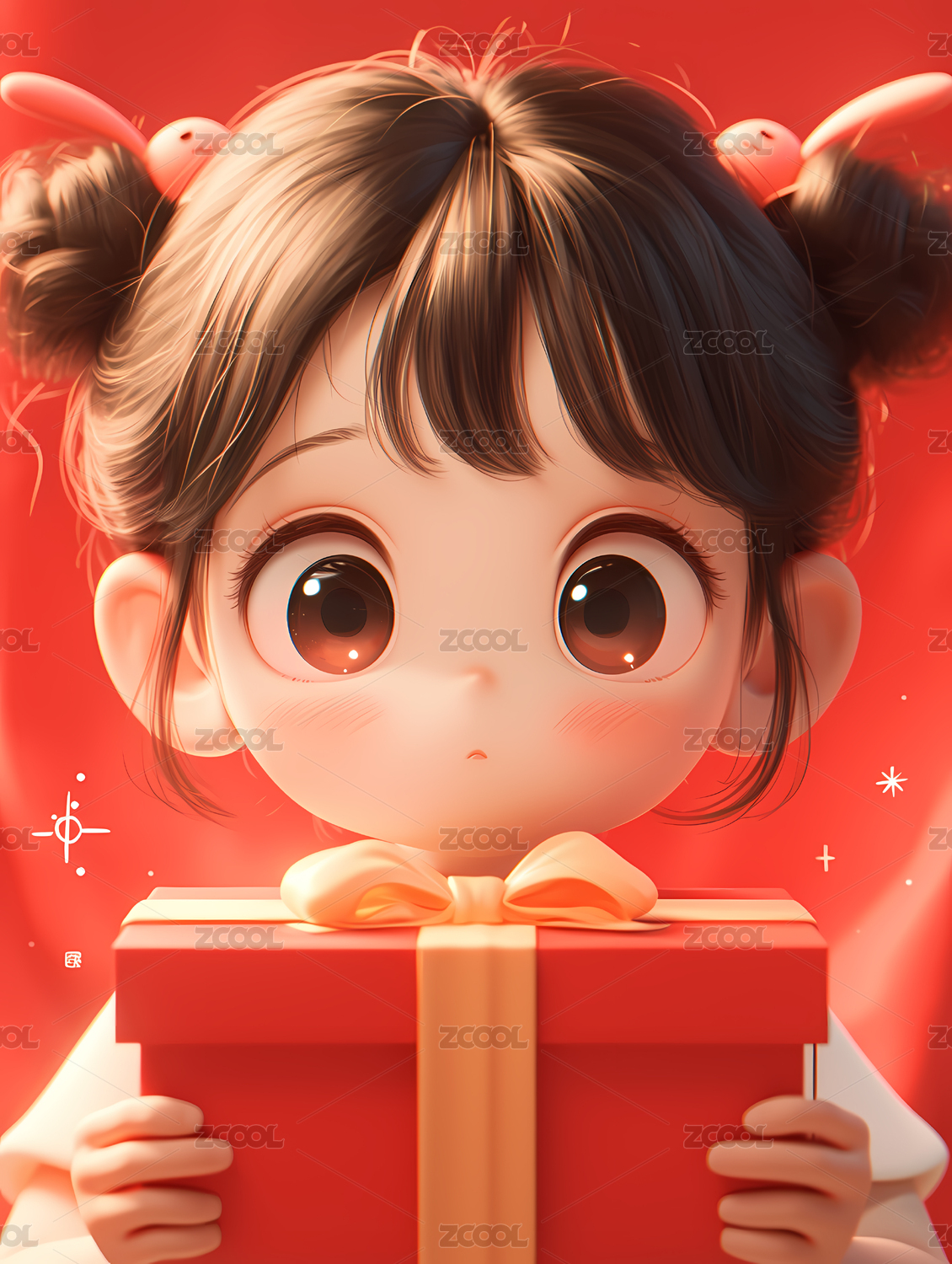 拆礼物的3D小女孩