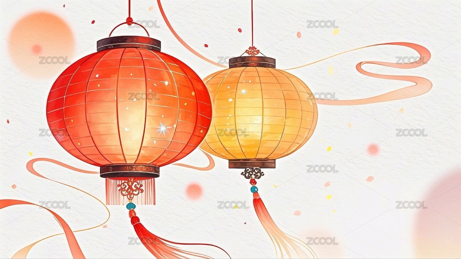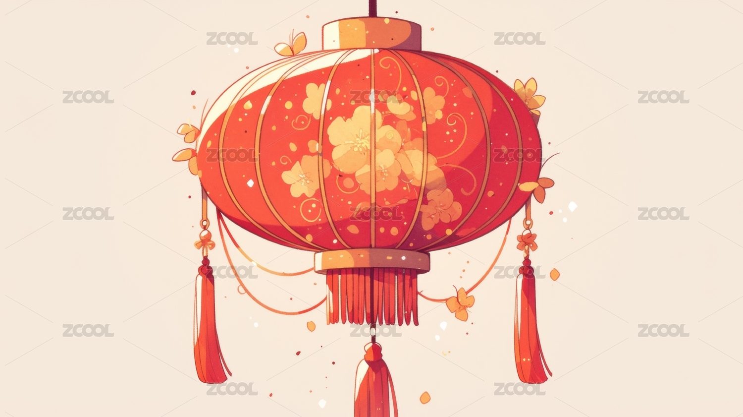 国风白底挂着一只传统红色灯笼扁平插画绘画
