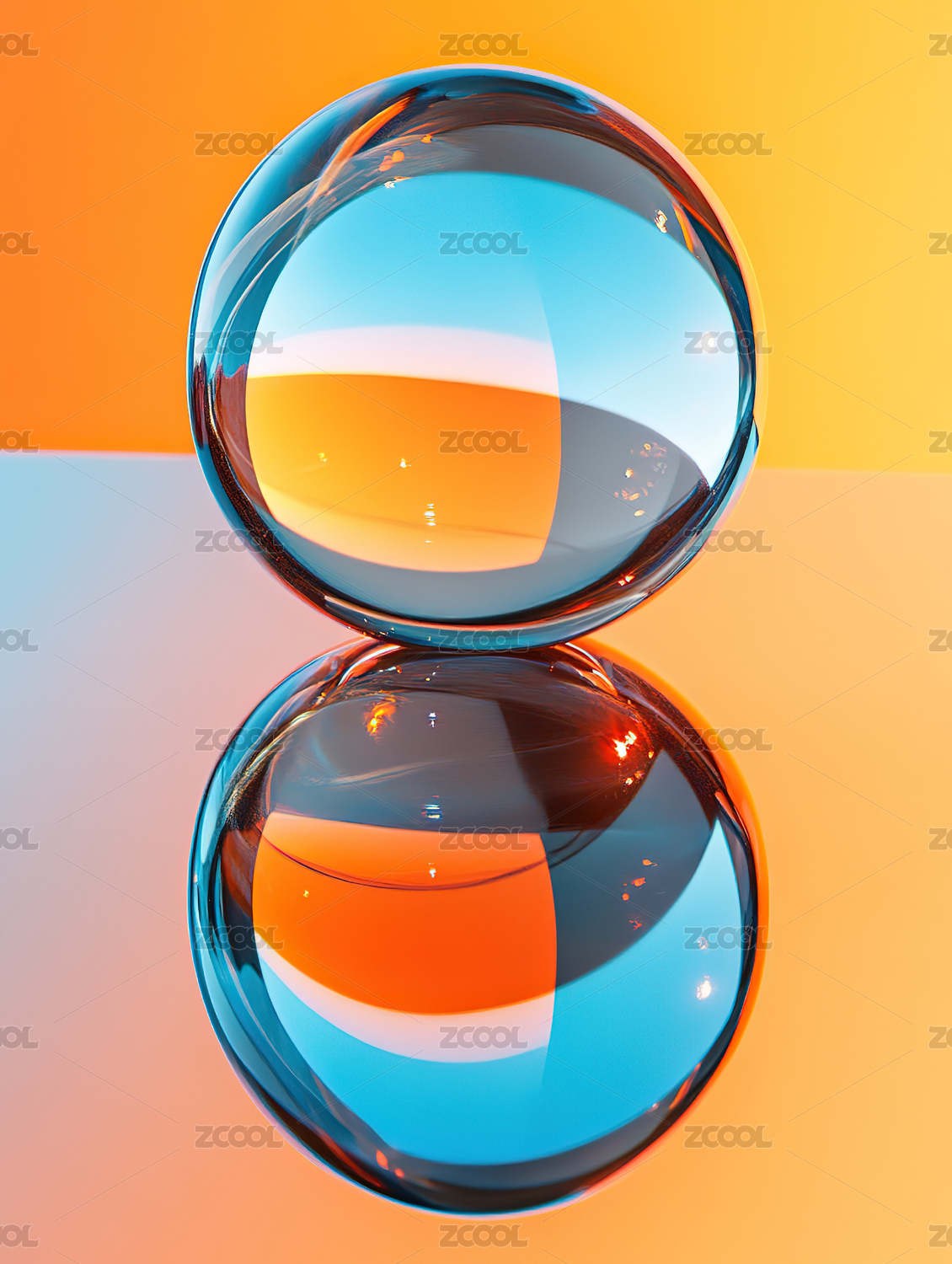 特写,AI数字艺术,透明,抽象,水晶球,反射,玻璃,天空,球体,环境