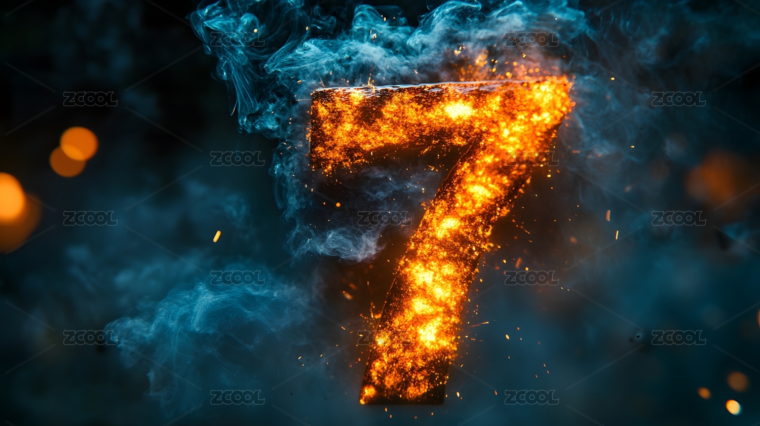 抽象天空中燃烧的数字7简单3D立体插画