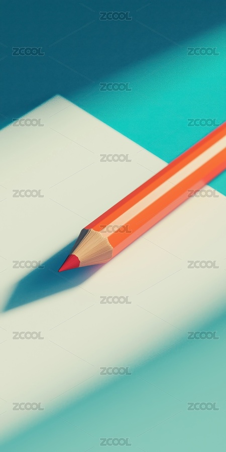 清新,明亮,纯色,桌面,铅笔,纸,3D,立体,插画,背景